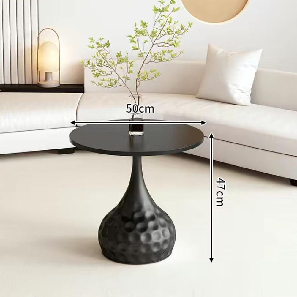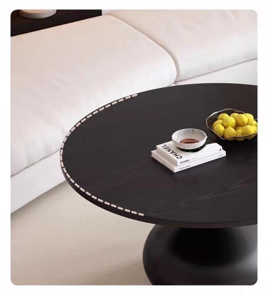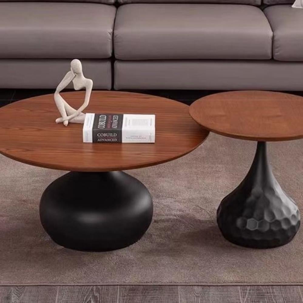 طقم طاولات قهوة دائري أنيق وعصري، يتكوّن من طاولة منخفضة كبيرة وأخرى صغيرة مرتفعة يمكن إدخالها تحتها بسهولة، مما يوفّر مرونة في الاستخدام ويوفّر مساحة عند الحاجة.