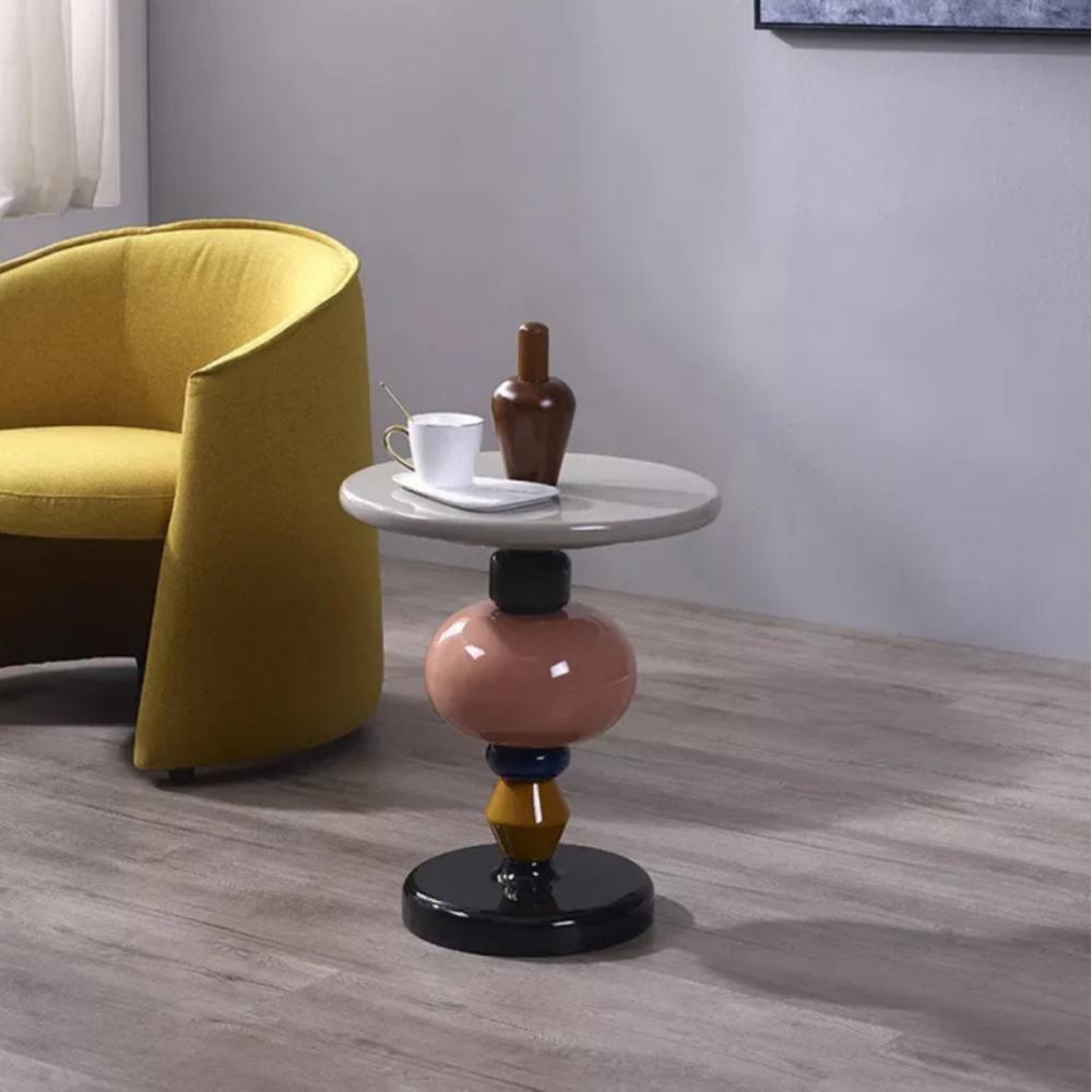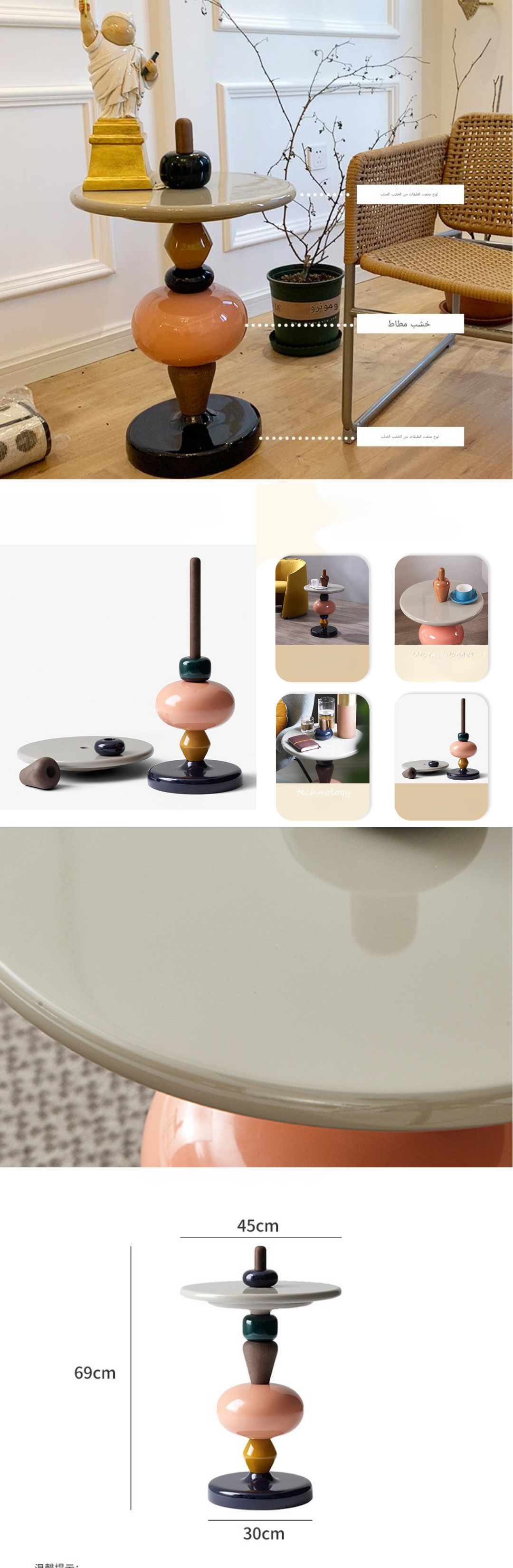 طاولة جانبية مصنوعة من الريزن، تتميز بتصميم مبتكر يتكون من أجزاء قابلة للفك والتركيب على عمود خشبي، مما يجعلها سهلة الاستخدام والنقل. سطح الطاولة مصنوع من الريزن المتين الذي يتميز بسهولة التنظيف والمقاومة للخدوش، مما يضمن لها دوامًا طويلاً. متوفرة بألوان متعددة تناسب جميع الأذواق .