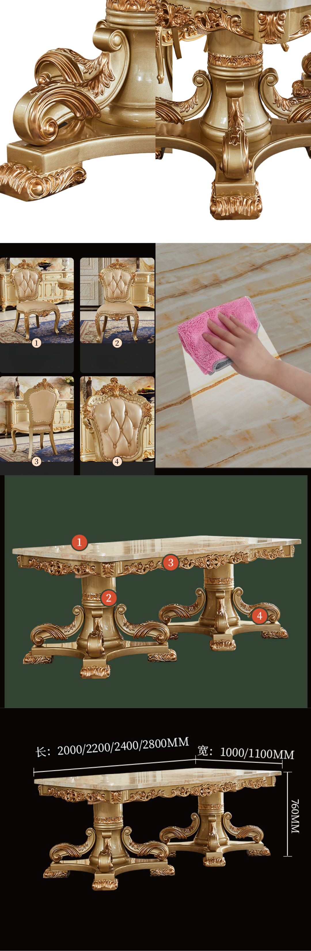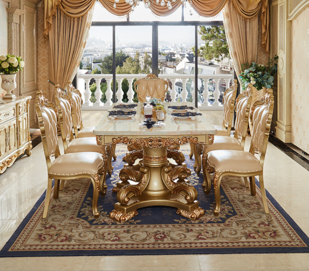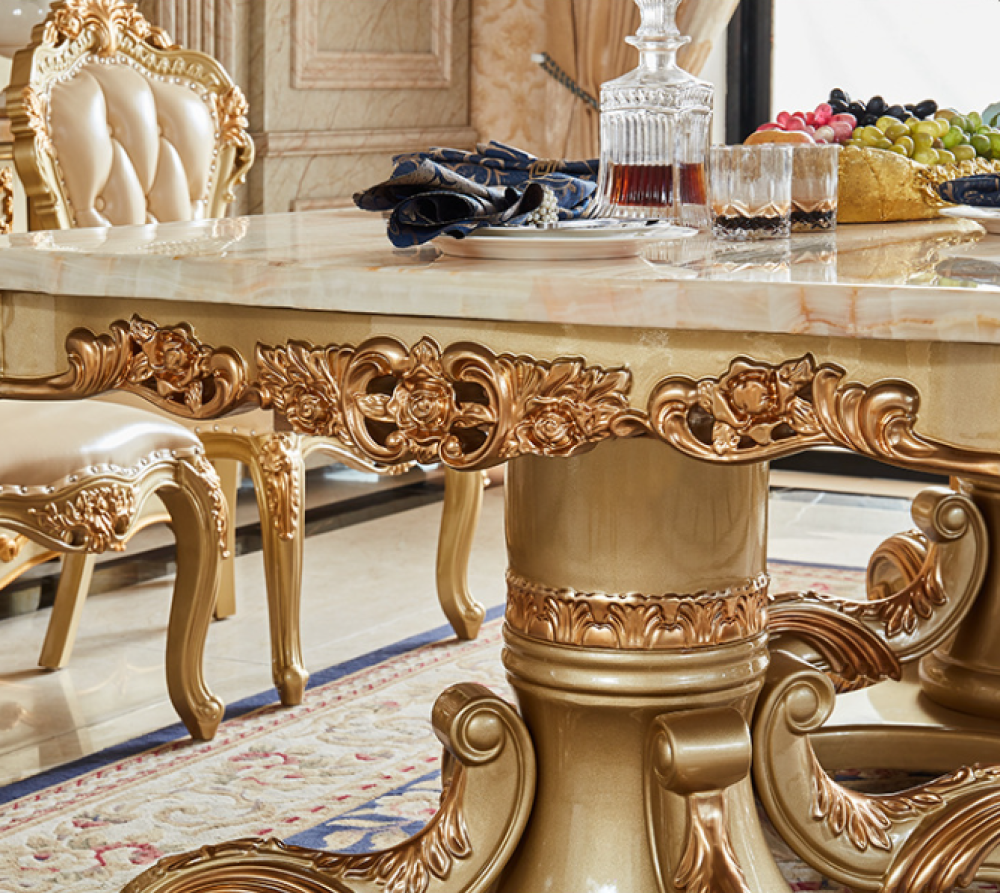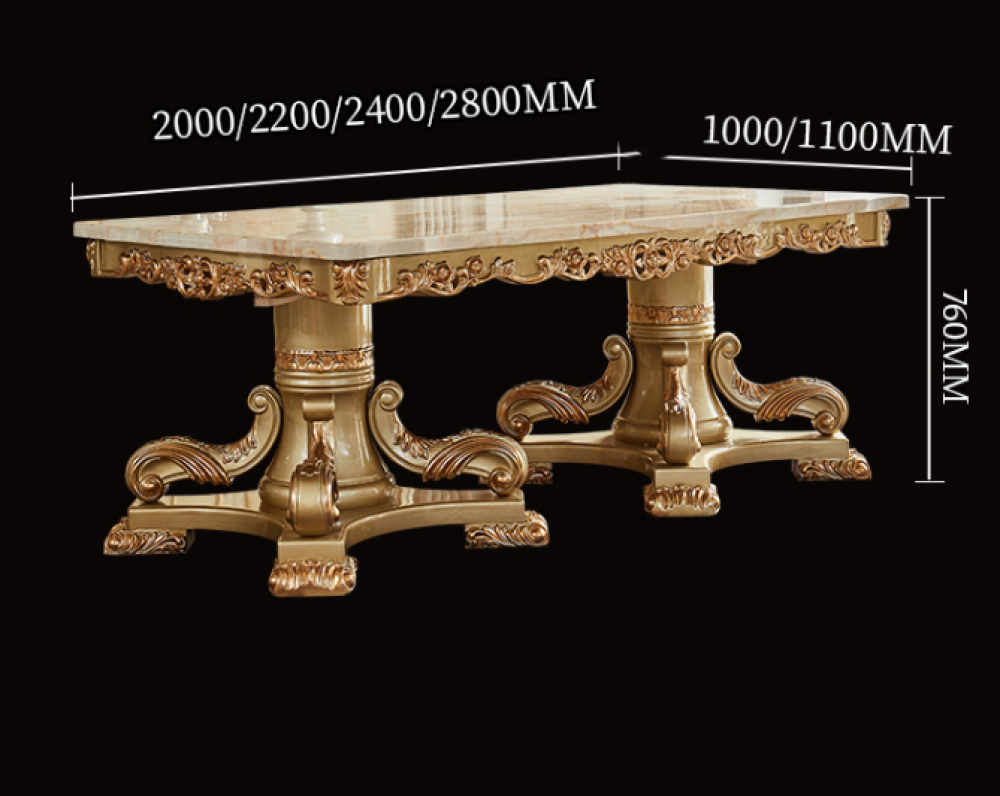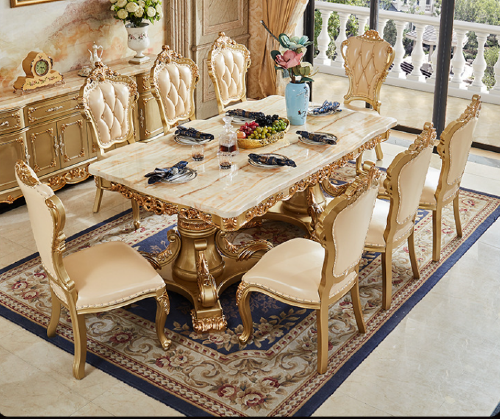 أضف لمسة من الرقي إلى منزلك مع طاولة طعام سطحها مصنوع من أجود أنواع الرخام ، تجمع بين الأناقة والمتانة. تصميمها العصري مستوحى من الطابع الأوروبي الكلاسيكي، مما يجعلها الخيار المثالي للمساحات الفاخرة.