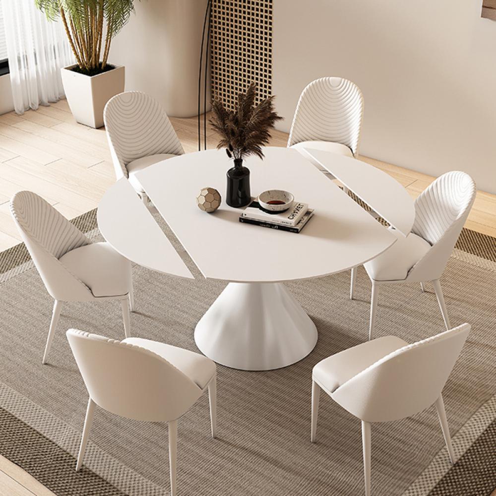 طاولة طعام  رخامية دئرية قابلة للتعديل باللون الابيض