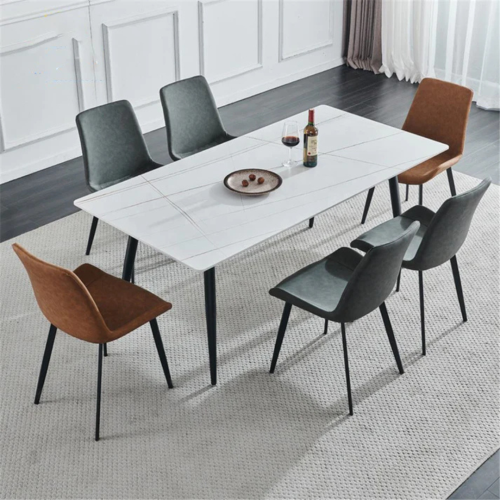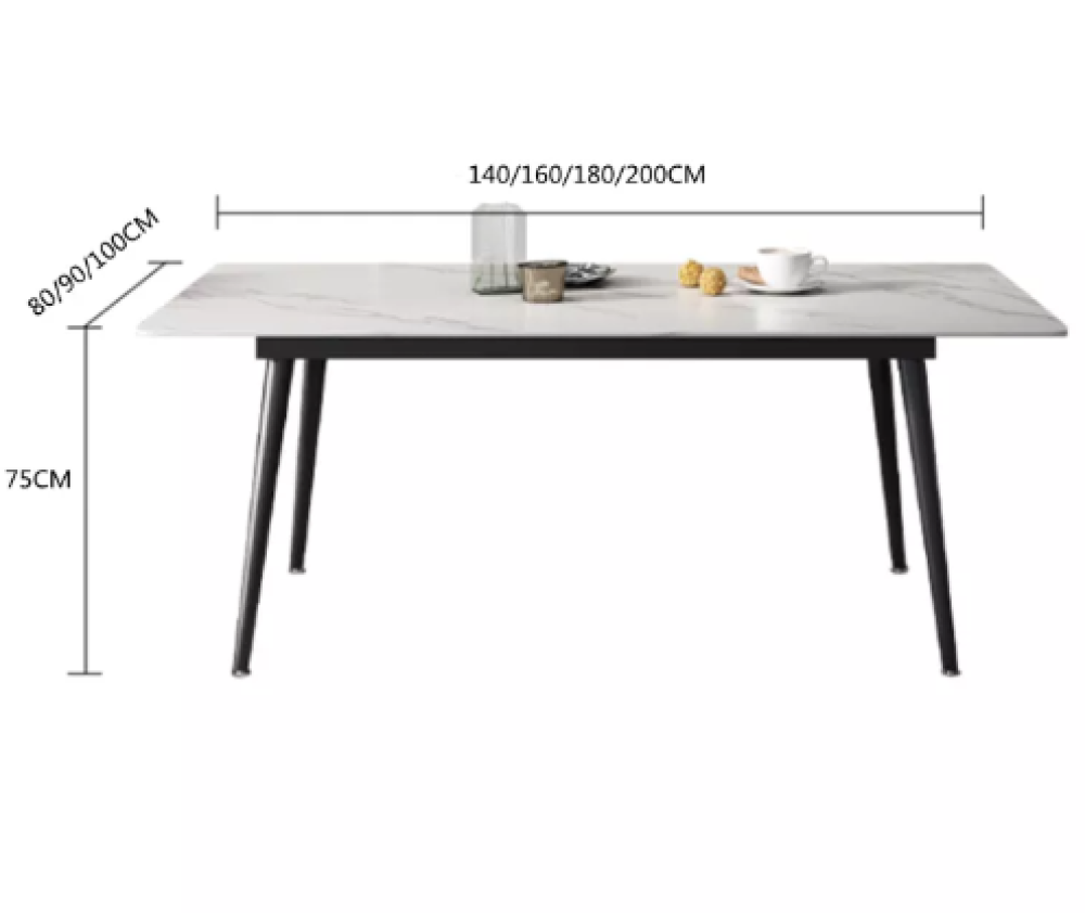 تتميز طاولة الطعام المودرن بسطح أنيق مصنوع من الرخام الأبيض القوي، مع أرجل معدنية باللون الأسود تضيف لمسة عصرية ومتانة استثنائية. صُممت لتكون عملية وجذابة، حيث تتيح لك الاختيار بين مقاسات متعددة لتناسب احتياجات عائلتك ومساحتك الداخلية.