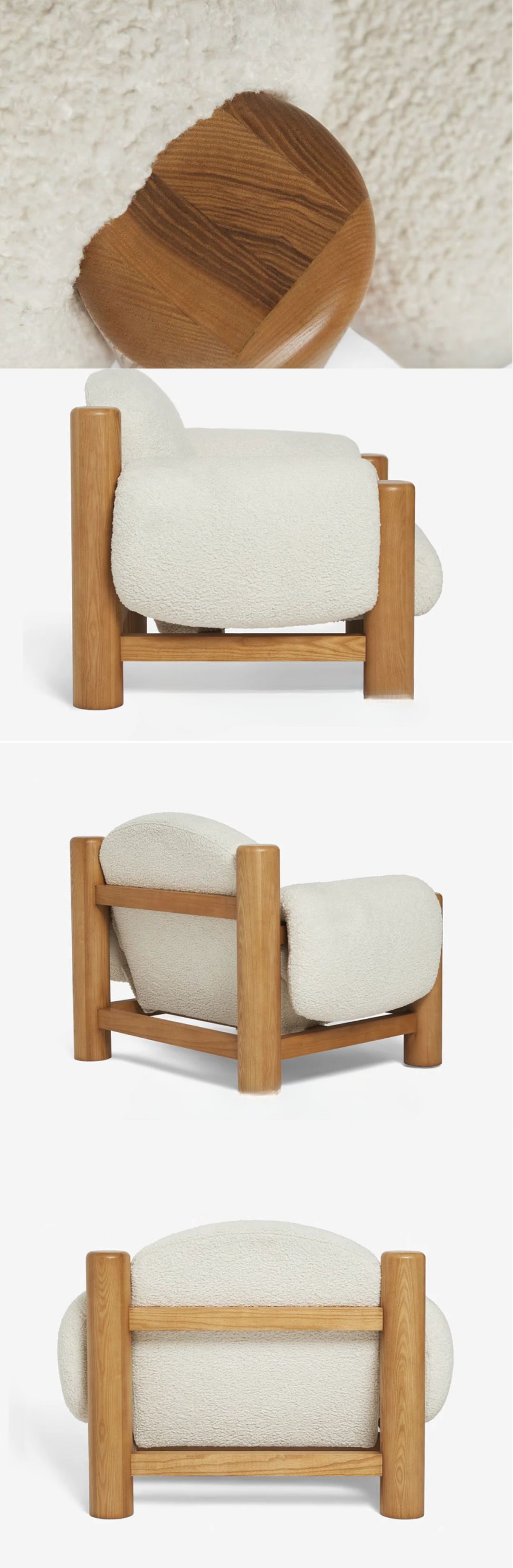 بتصميم جديد وأنيق يعتمد على مواد التنجيد العصرية المصنوعة من قماش البوكلية التريندي لهذا العام. يتميز الكرسي بمسند وقاعدة وجوانب مبطنة لتوفير الراحة والجاذبية. الهيكل مصنوع من الخشب الصلب لضمان المتانة والاستدامة، مما يجعله مثاليًا للجلوس لفترات طويلة.