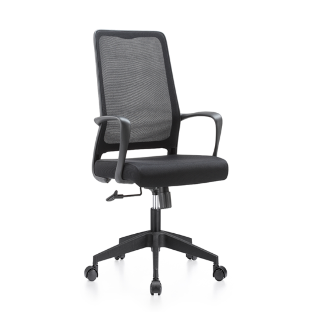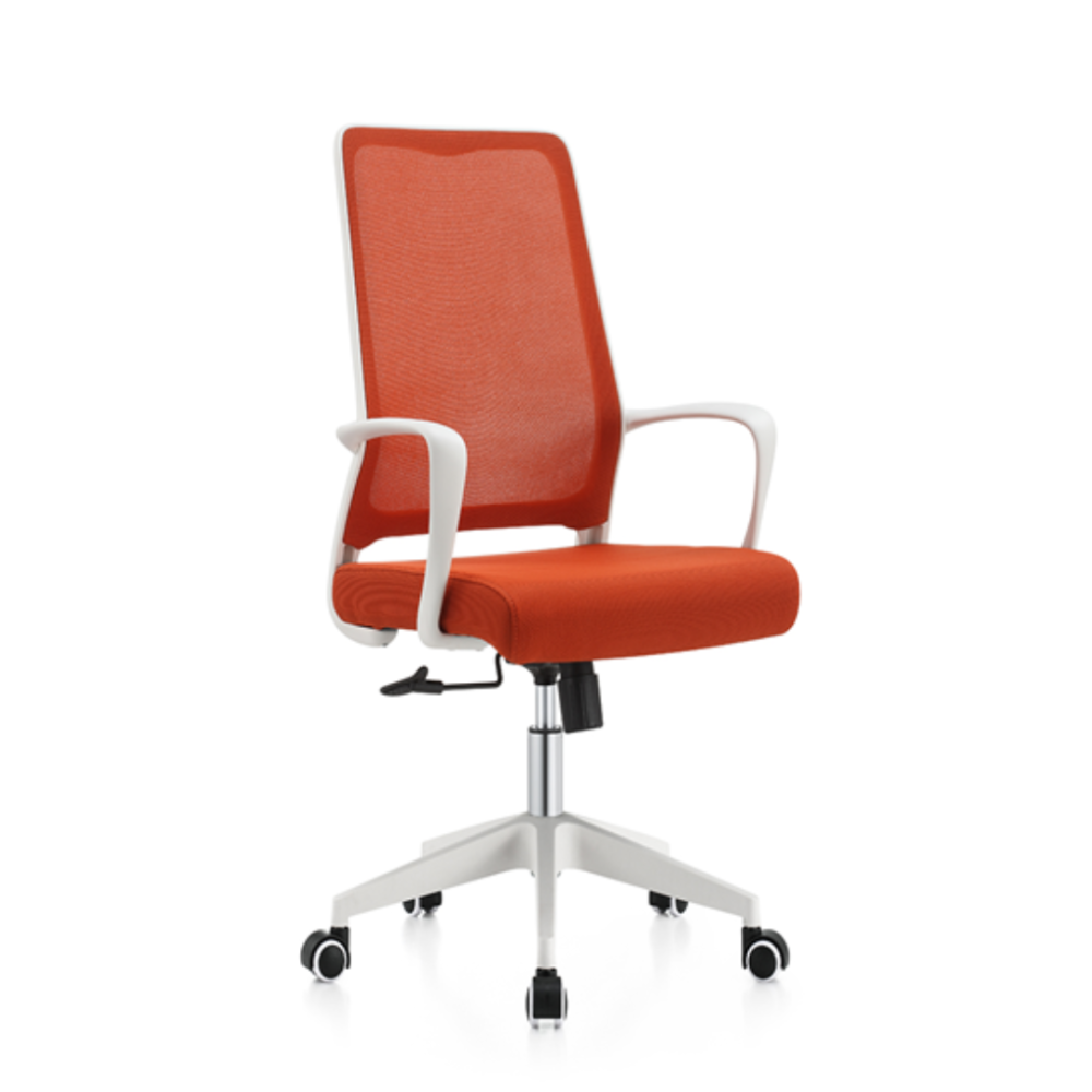 مسند الظهر مصنوع من قماش شبكي ثلاثي الطبقات يتميز بمرونة متساوية وثبات عالي، مما يمنع الترهل أو فقدان الشكل مع الاستخدام الطويل.المقعد مغطى بقماش بوليستر ناعم ومسامي, التعبئة الداخلية إسفنج.العجلات مصنوعة من النايلون المقوى هادئة، مقاومة للتآكل، لا تخدش الأرضيات الخشبية.