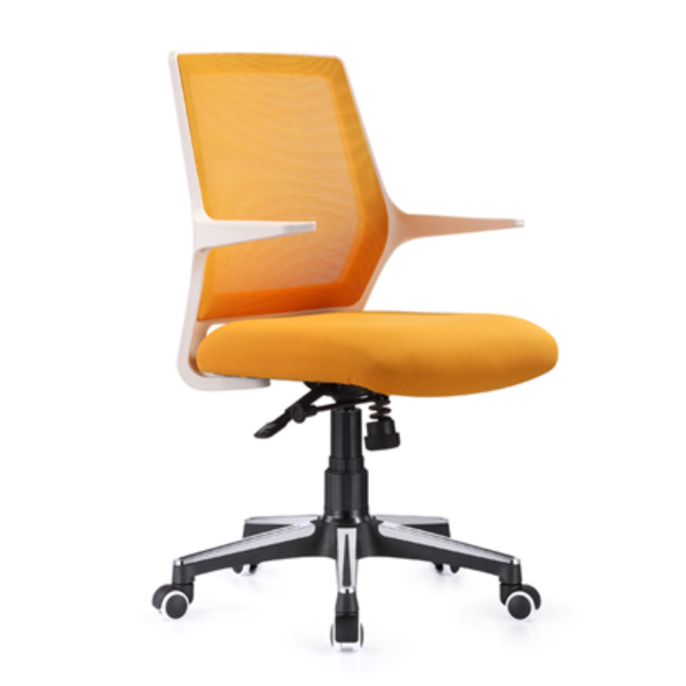 ظهر الكرسي مصنوع من قماش شبكي عالي المرونة، يمتاز بعودة متوازنة وقوة مرونة جيدة، لا يتشكل مع الاستخدام الطويل ولا يصبح مترهلاً؛ وسادة المقعد مصنوعة من قماش بوليستر ناعم، تنفسية عالية وملائمة للبشرة، ثبات الألوان مرتفع، لا يتلاشى مع الاستخدام الطويل.العجلات مصنوعة من النايلون المقوى هادئة، مقاومة للتآكل، لا تخدش الأرضيات الخشبية.