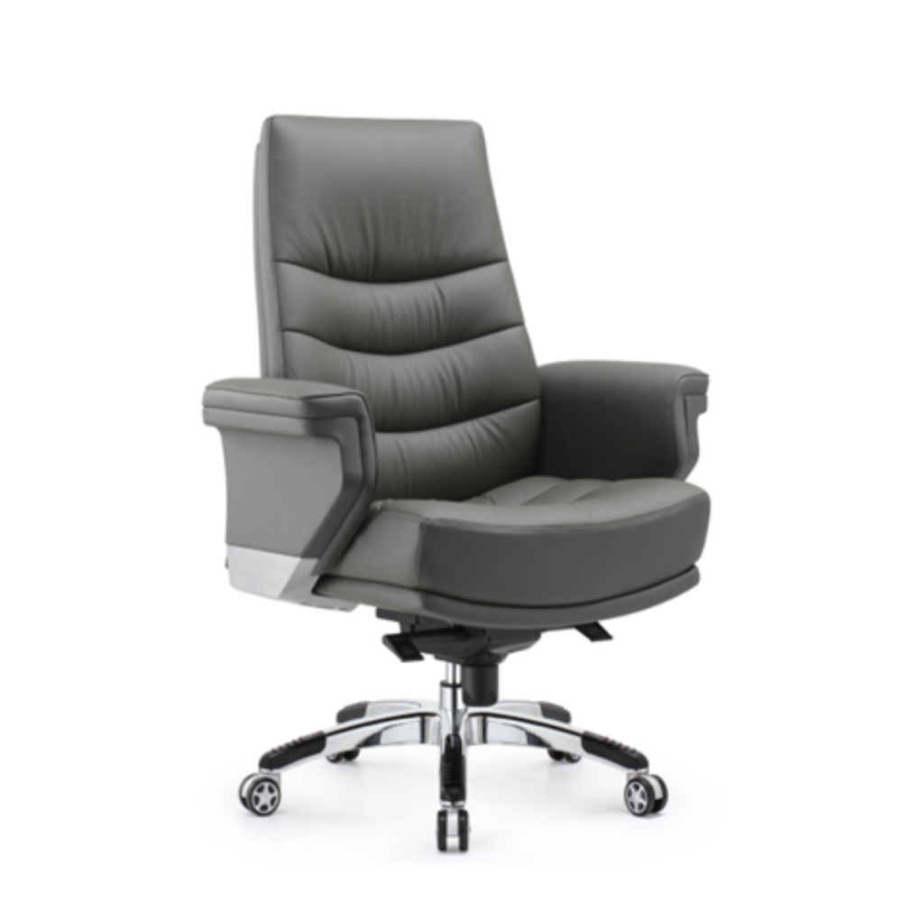الخامة الخارجية جلد باللون الرمادي الداكن فائق الجودة صديق للبيئة، ملمس ناعم وسهل التنظيف، مقاوم للتآكل والاستخدام الطويل . المقعد إسفنج يضمن راحة واستدامة طويلة الأمد دون هبوط أو تشوه . الأذرع: أذرع كاملة التغطية، مصنوعة من سبائك الألمنيوم عالية الجودة . دعم الظهر دعم ظهر مرن قابل للتعديل، يوفر دعمًا دقيقًا، ويخفف آلام الظهر الناتجة عن الجلوس لفترات طويلة. العجلات ناعمة وصامتة، مقاومة للتآكل، لا تؤذي الأرضيات الخشبية.