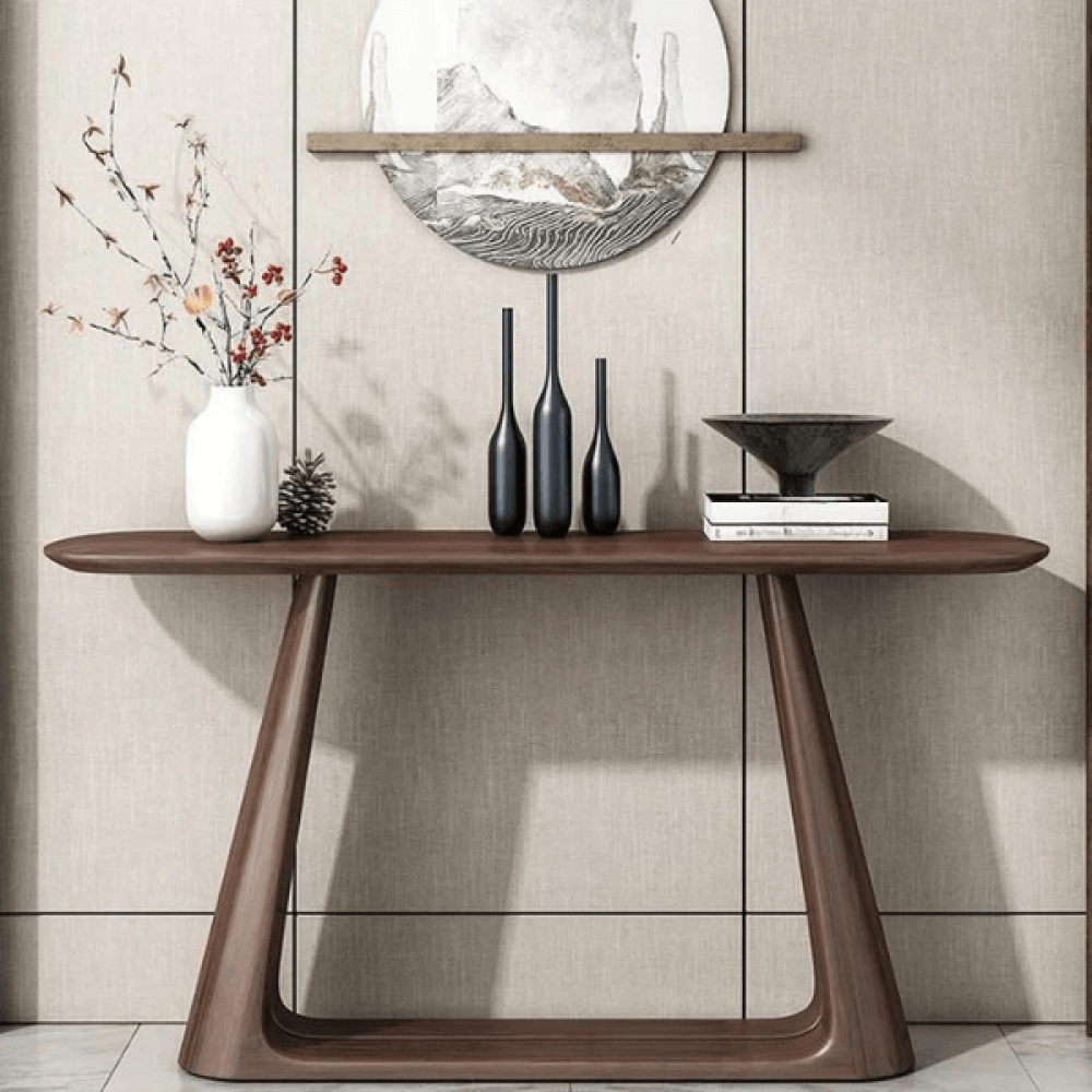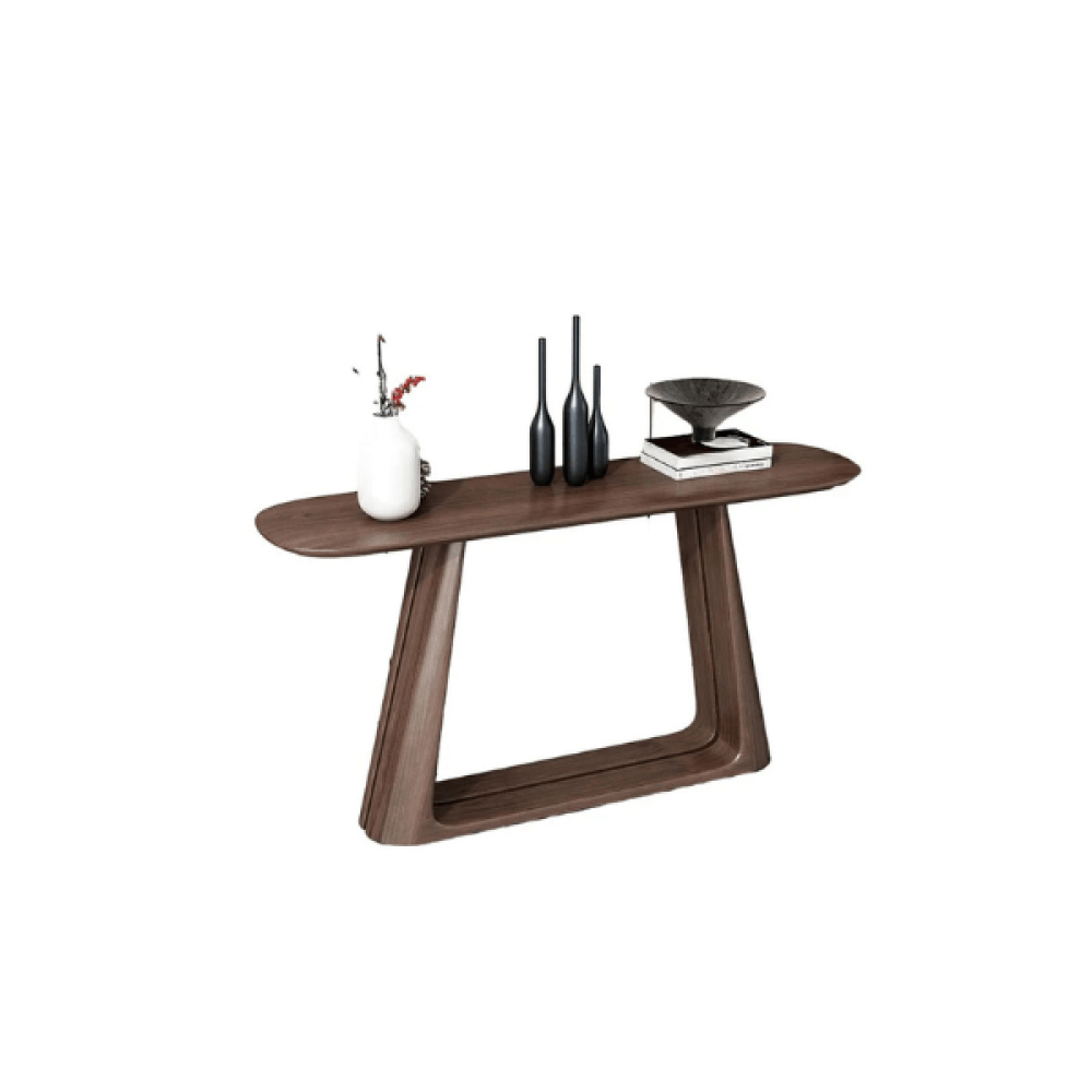 طاولة كونسول أنيقة تضفي لمسة من الرقي على أي غرفة. مصنوعة من خشب هندسي قوي بلمسة نهائية باللون البني الفخم، مثالية لعرض الديكور أو لتنظيم المتعلقات الشخصية.
