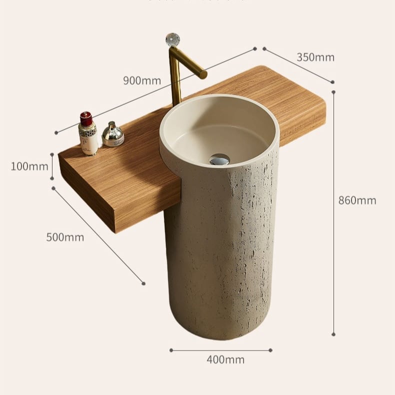 حوض غسيل حجر طبيعي وخشب بتصميم عتيق وفاخر