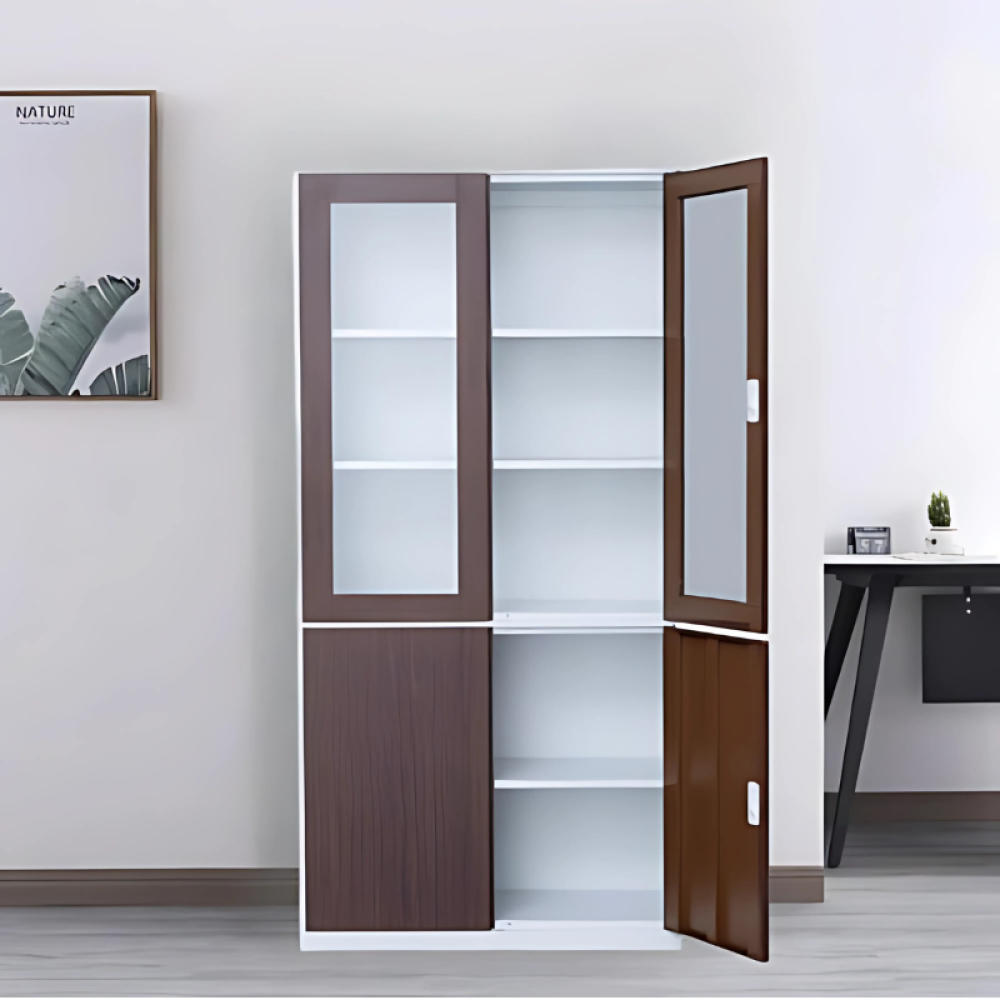 حافظ على مكتبك مرتبًا واحترافيًا مع دولاب التخزين المعدني المصمم بعناية ليدمج بين القوة والجمال. مصنوع من هيكل حديدي صلب يمنحك ثباتًا ومتانة تدوم طويلًا، مع أبواب زجاجية علوية تضيف لمسة راقية وانسيابية إلى المكتب. يتميز بتقسيم داخلي عملي يوفر مساحات متعددة لحفظ الملفات، الكتب، والمستلزمات اليومية.