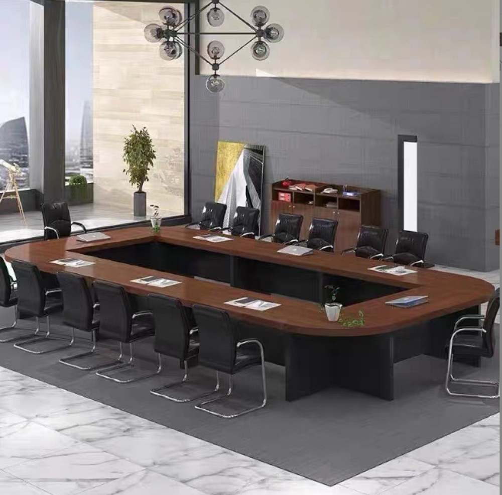 ارتقِ بأجواء اجتماعاتك مع طاولة الاجتماعات المميزة بتصميمها على شكل حرف U، المصنوعة من خشب صلب فاخر بملمس قريب للطبيعي يمنح إحساسًا بالدفء والرقي.