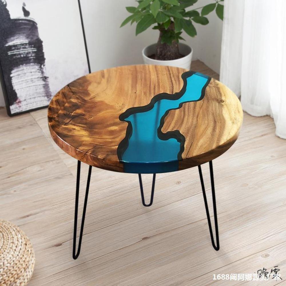 طاولة القهوة مصنوعة من مواد صديقة للبيئة والإيبوكسي، ملمس ناعم، صلب، ومقاوم للاهتراء،