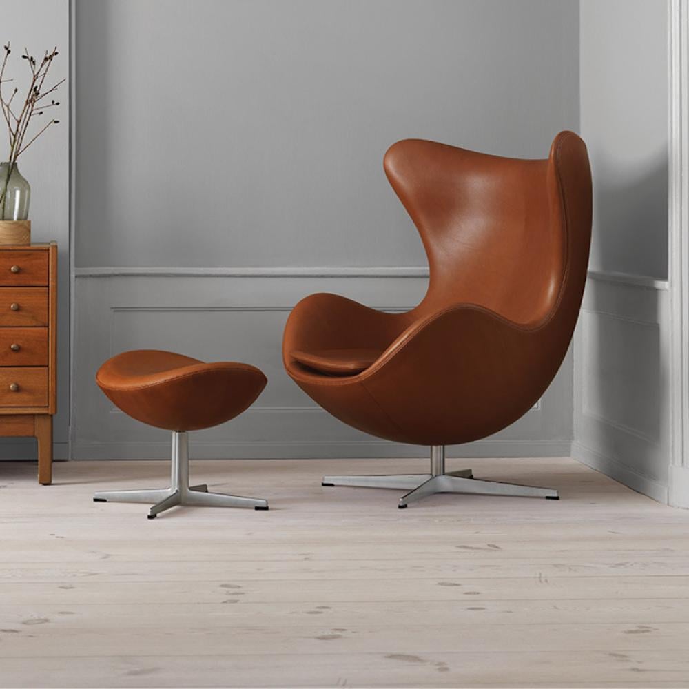 كرسي مع مسند أقدام من الجلد الطبيعي