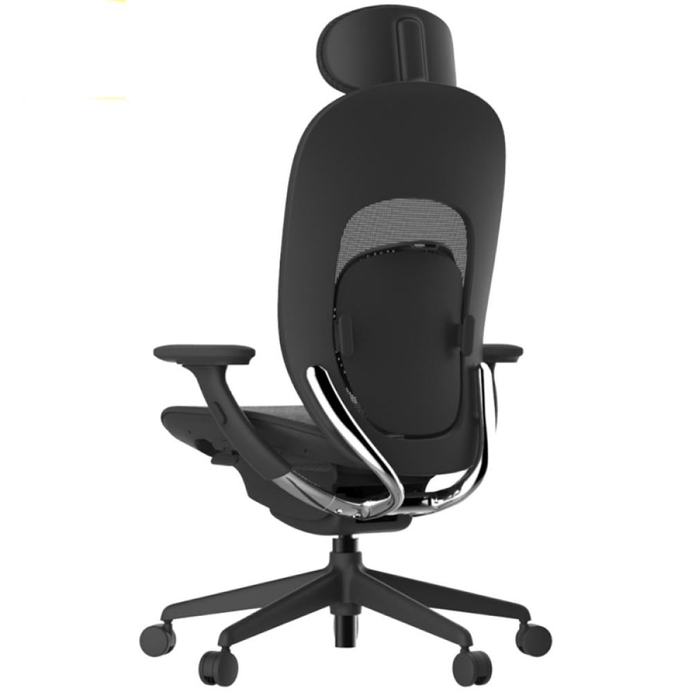 الكرسي يتشكل حسب هندسة الجسم ويحتوي على داعم لمنطقة أسفل الظهر للشعور بالراحة طول فترة الاستخدام