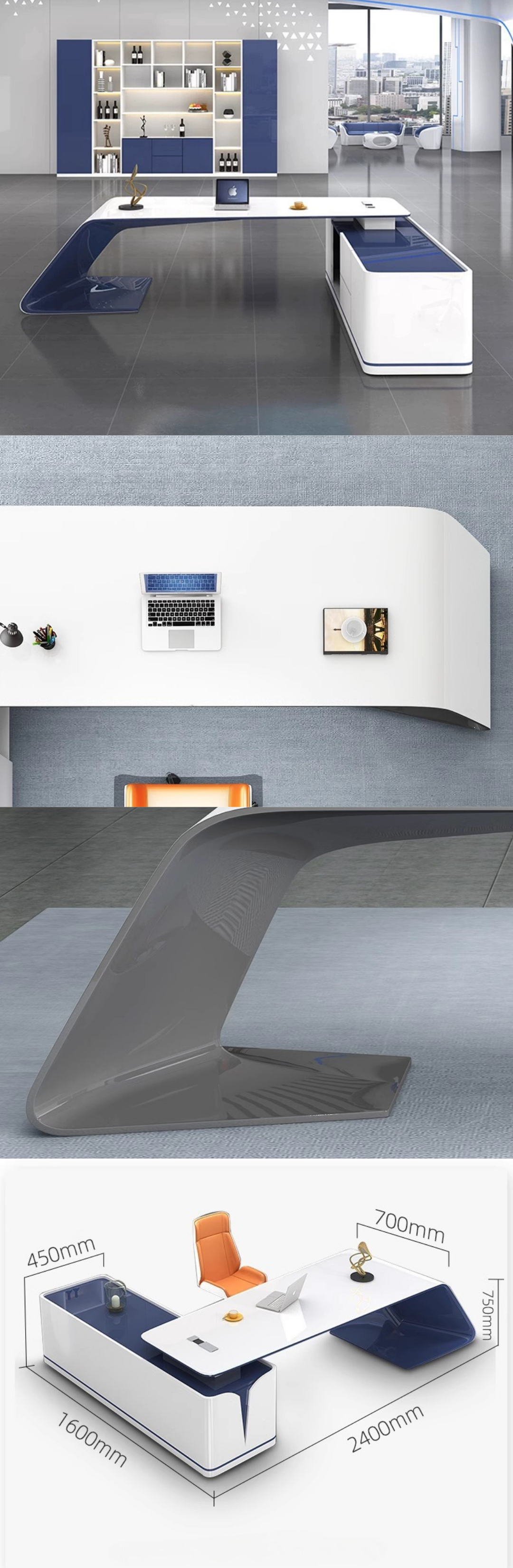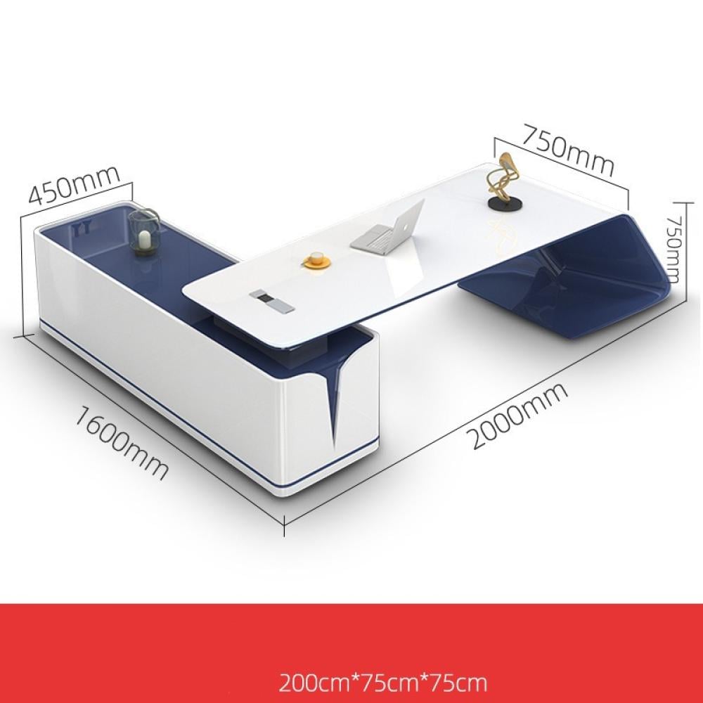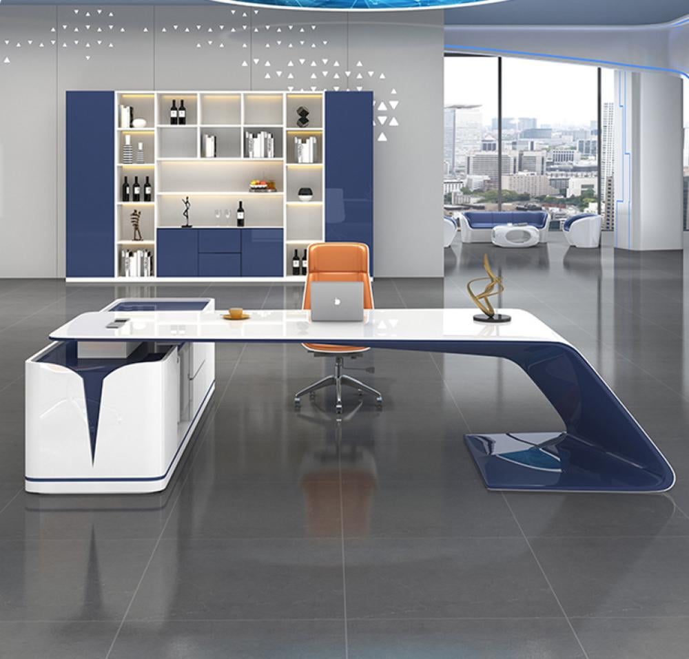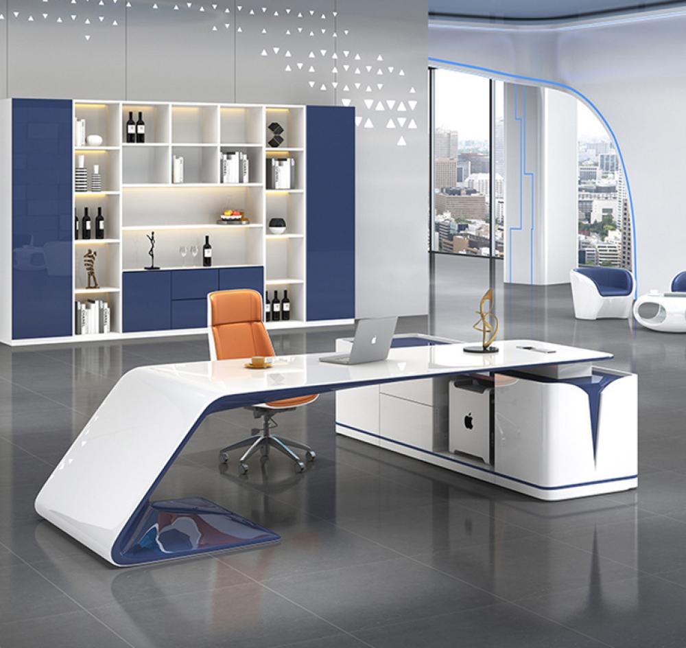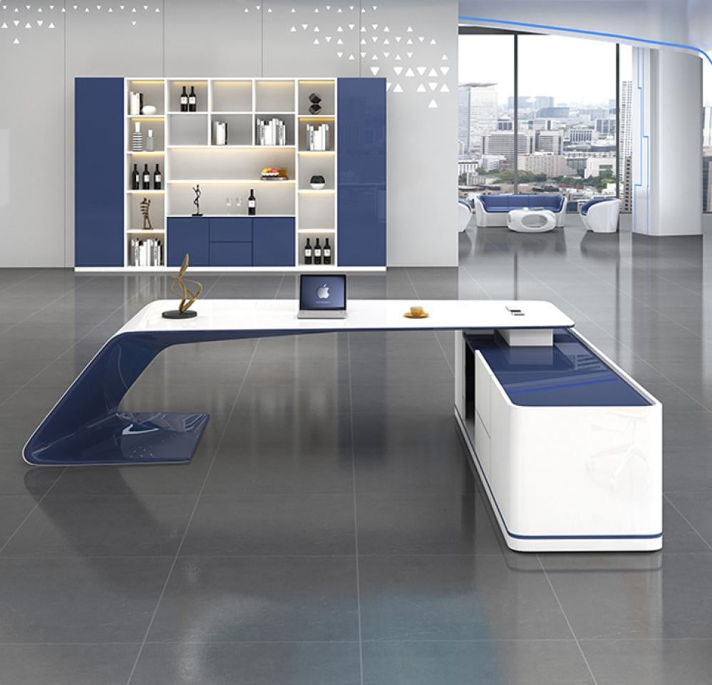 مكتب ابيض وازرق لامع مع خزانة متطابقة