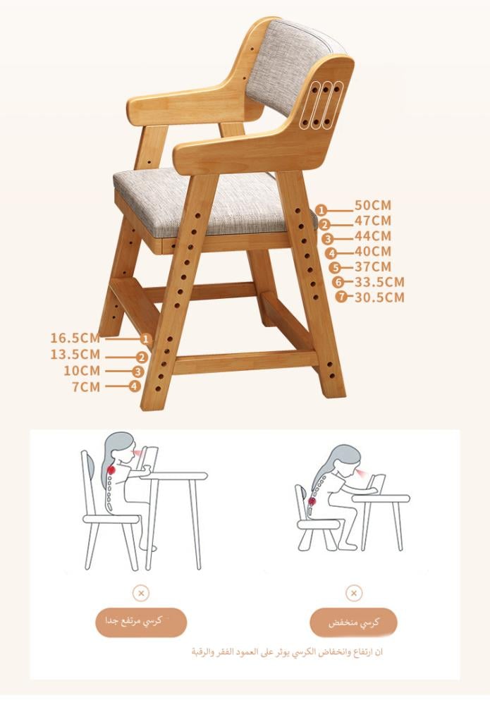 يمكن تعديل ارتفاع الكرسي والمكتب من خلال الأماكن المخصصة لها وذلك حفاظا على سلامة العمود الفقري للمستخدم