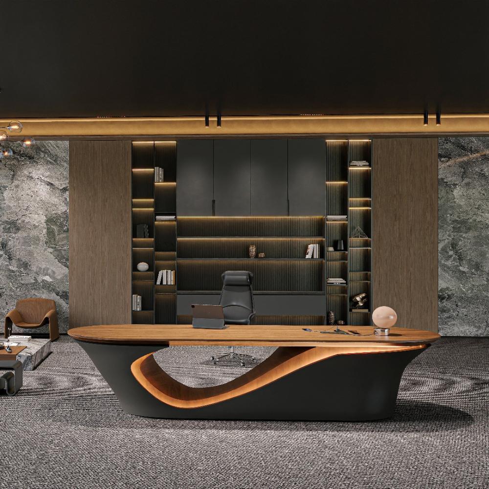 يُعتبر هذا المكتب أثاث مكتب مخصص يلبي احتياجاتك الخاصة، مع تصميم كبير يبرز السلطة والرقي في أي مكتب تنفيذي. اللون الأسود الكلاسيكي يضفي طابعًا أنيقًا وعصريًا في الوقت ذاته، ما يجعل المكتب قطعة أساسية لكل مساحة عمل راقية.