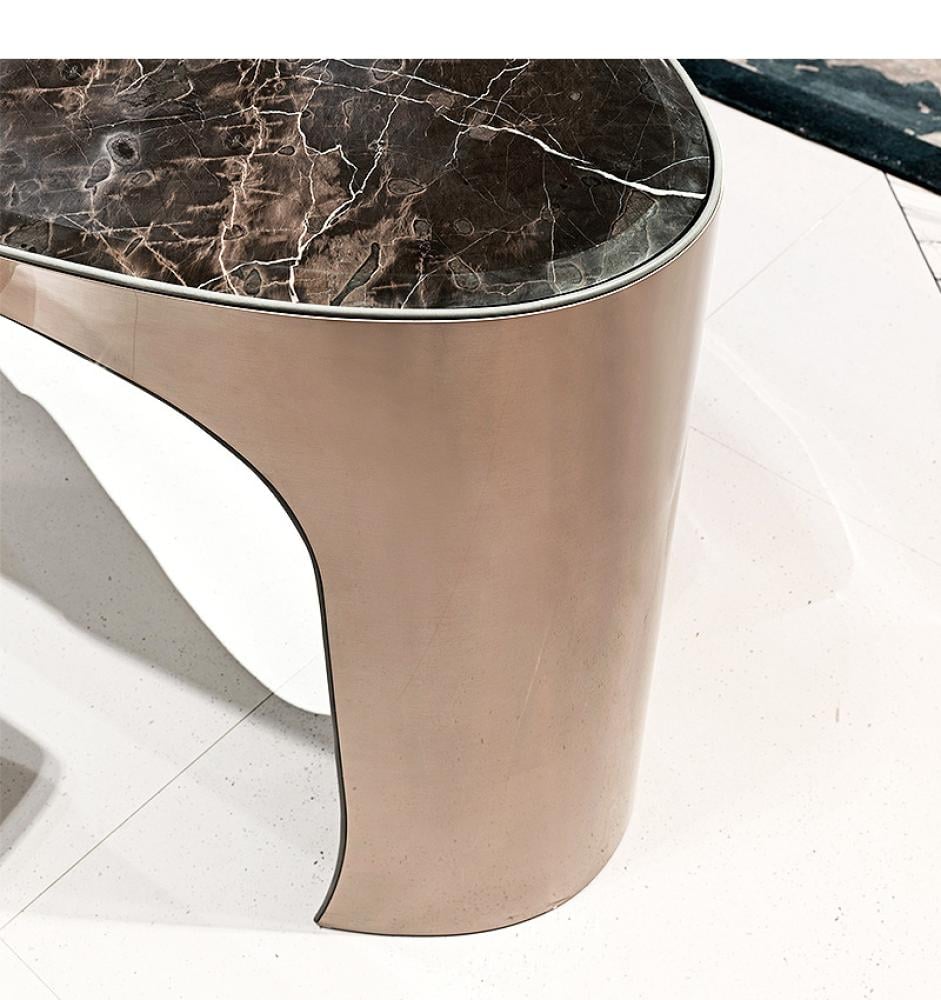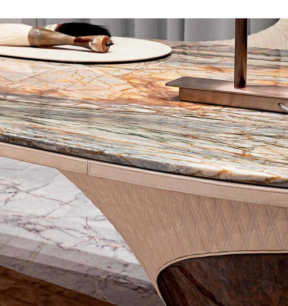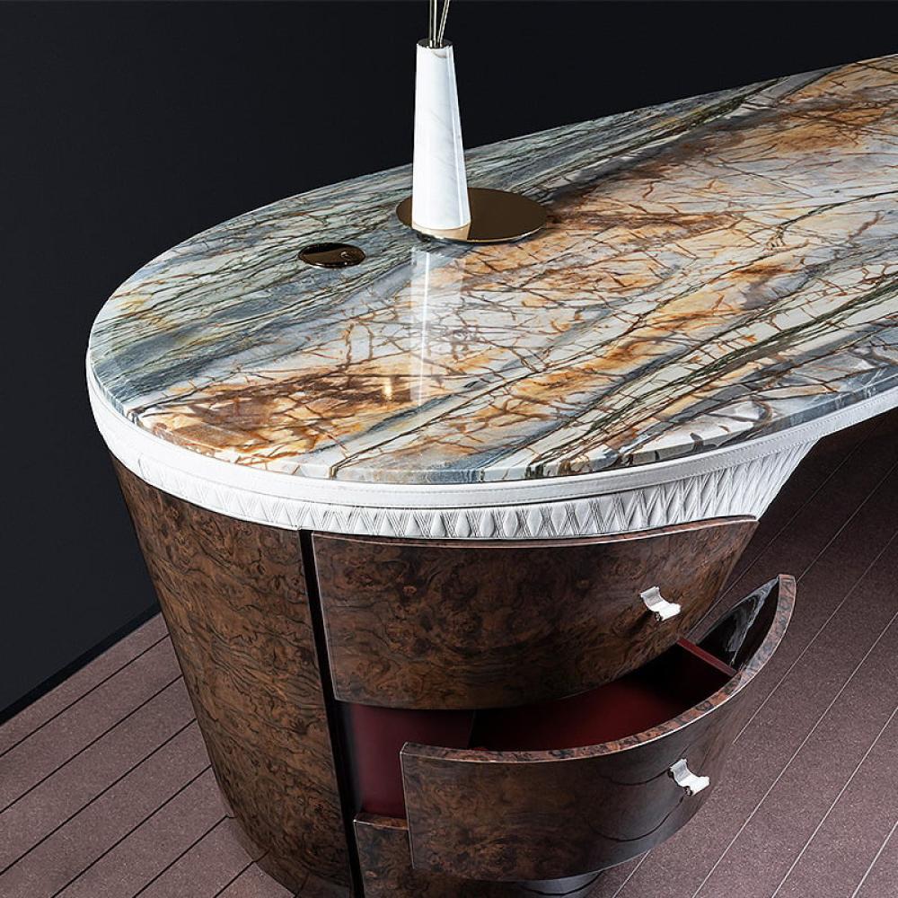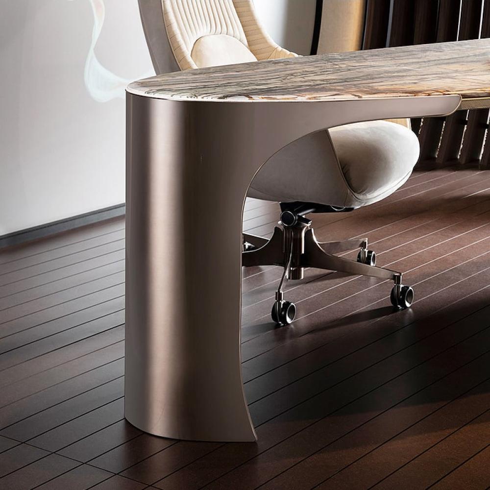 التصميم يعكس الفخامة الإيطالية بأسلوب عصري، مع خطوط أنيقة ومواد استثنائية تمنح المكتب حضورًا قويًا في المكاتب التنفيذية الراقية أو صالات الاستقبال الفاخرة.