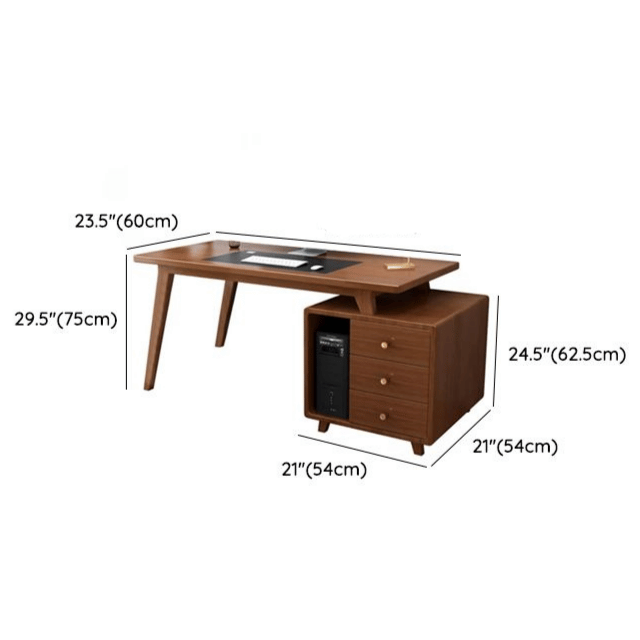 مكتب زاوية مع خزانة أدراج من الخشب الصلب – لون بني دافئ