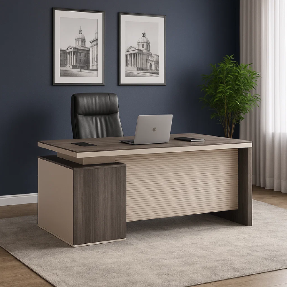 مكتب عملي أنيق بتصميم حديث يوازن بين المتانة والجمال، مثالي لمكاتب الشركات أو الاستخدام المنزلي.