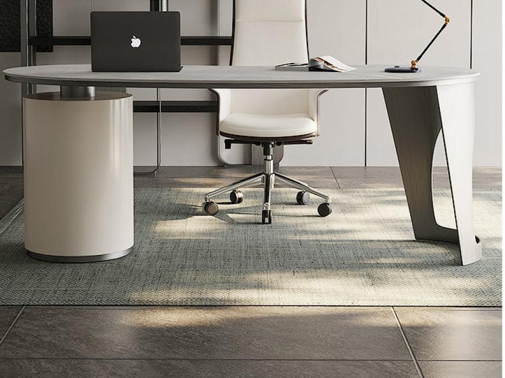 مكتب فاخر بتشطيب تايتانيوم راقٍ وأنيق، يتميز بتصميم إيطالي بسيط يجمع بين الجمالية العصرية والعملية العالية.