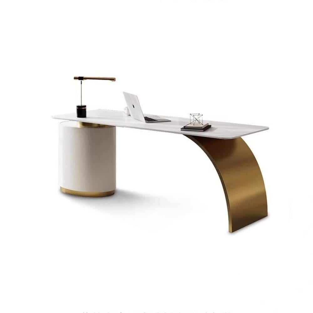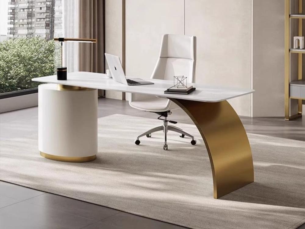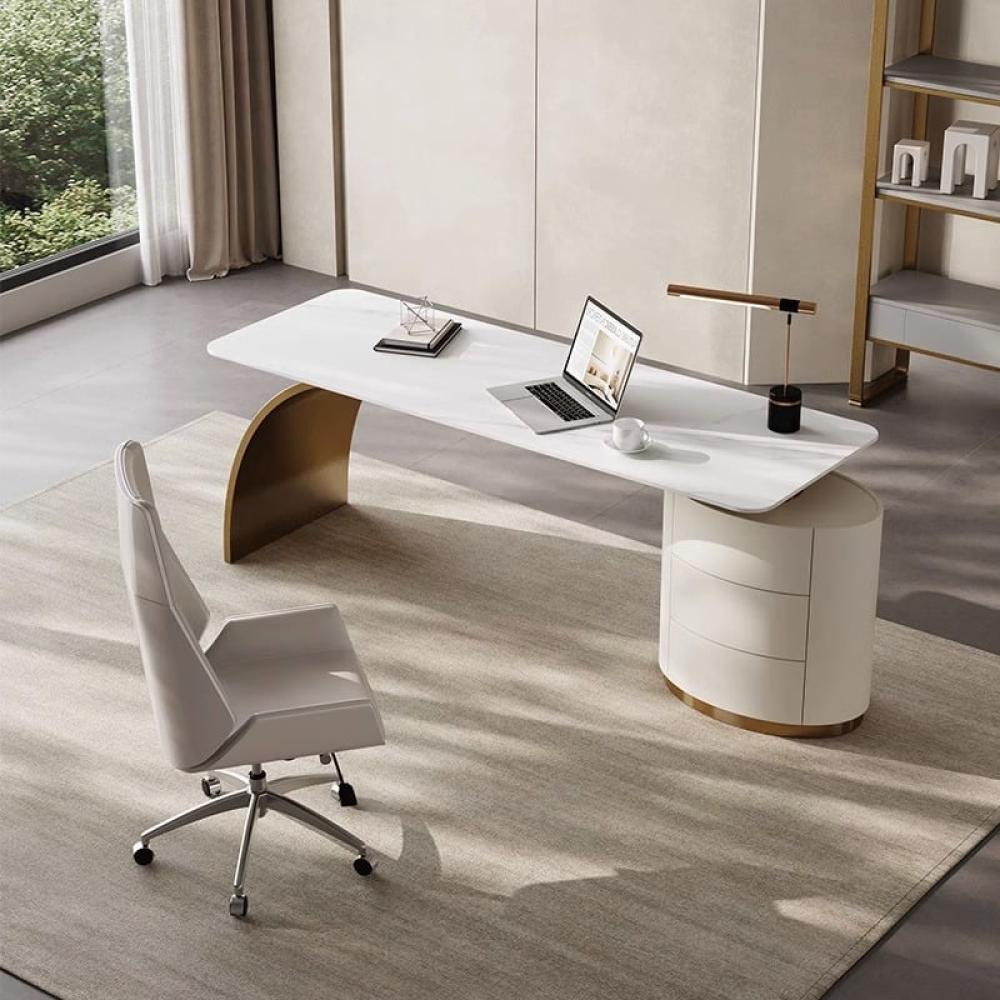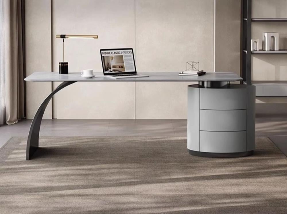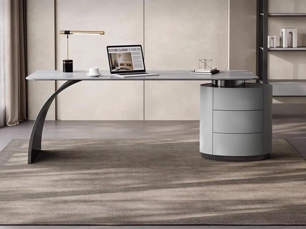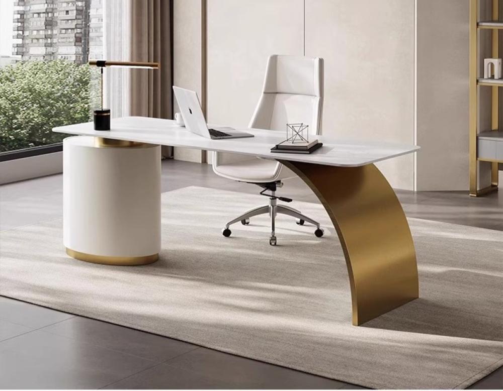 مكتب فاخر وخفيف الوزن مصنوع من لوح صخري صناعي ، مثالي لغرف النوم، المكاتب المنزلية، والشقق الصغيرة. يجمع بين البساطة والحداثة، مناسب للكتابة والعمل على الكمبيوتر مع تصميم عملي ومساحة مريحة.