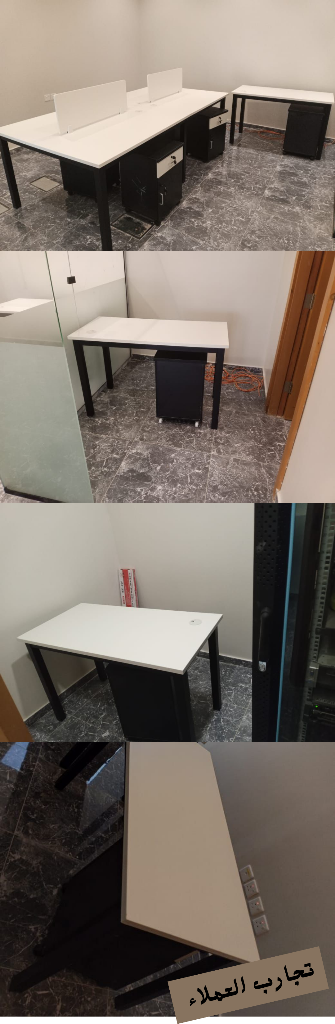 محطة عمل متكاملة تحتوي: مكتب + كرسي + وحدة ادراج وتختلف حسب المقاسات والأعداد.