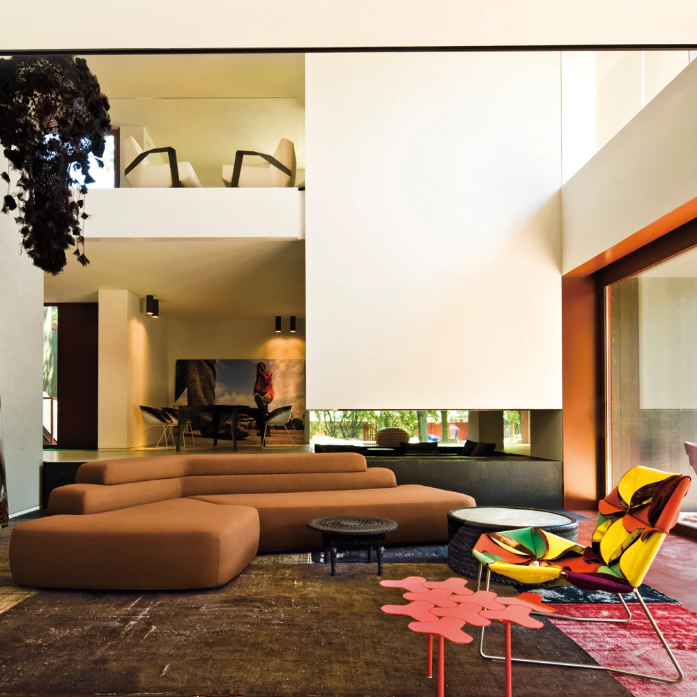 أريكة فريدة مستوحاة من الشكل الهندسي شبه المنحرف، بتصميم عصري يُضفي لمسة فنية على أي غرفة معيشة أو مساحة استقبال، وتتميز بقاعدة واسعة ومريحة تدعم الراحة والاسترخاء.