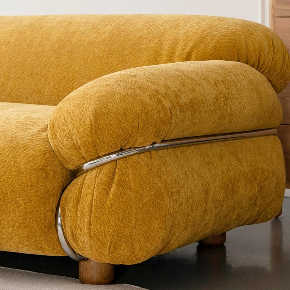 تتميز الأريكة بشريط زخرفي لإضفاء لمسة جمالية تناسب مختلف ديكورات المنازل. تصميمها الشبكي الفريد مع اللوزن الاصفر الزاهي يجعلها الخيار الأمثل لغرف المعيشة العصرية التي تبحث عن التميز والراحة.
