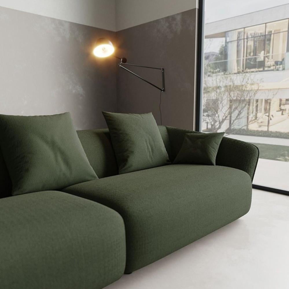 أريكة فاخرة مصنوعة من قماش المخمل الناعم، بتصميم مستوحى من أسلوب المصممين الإيطاليين