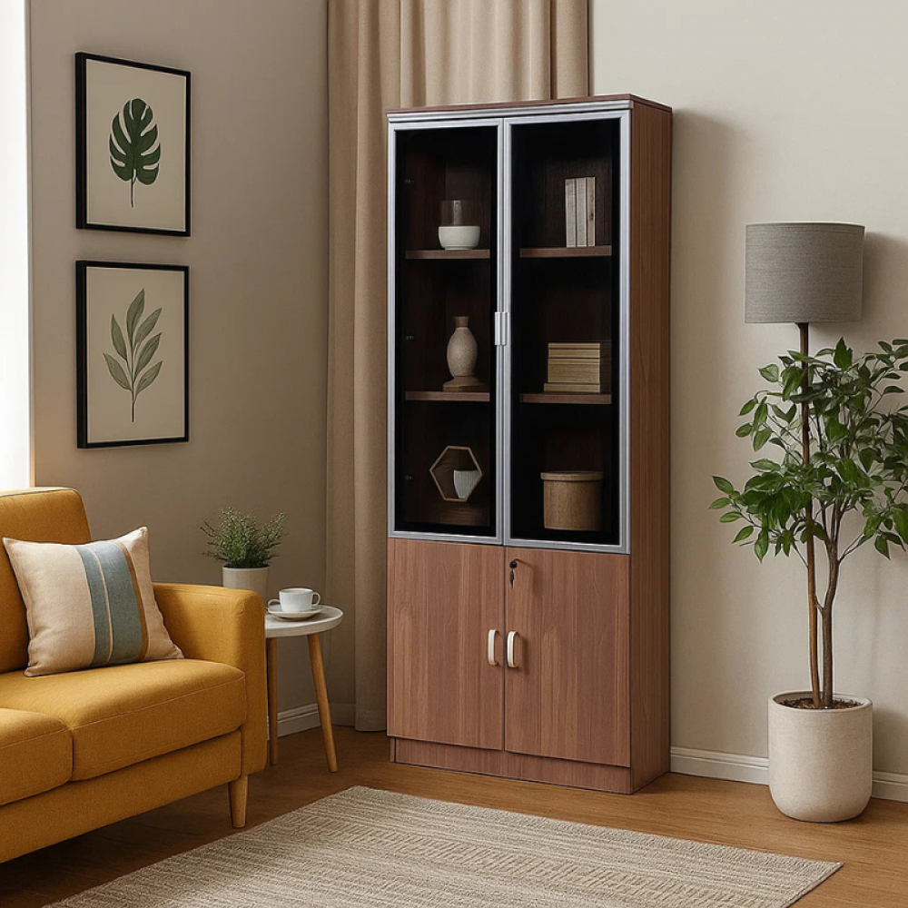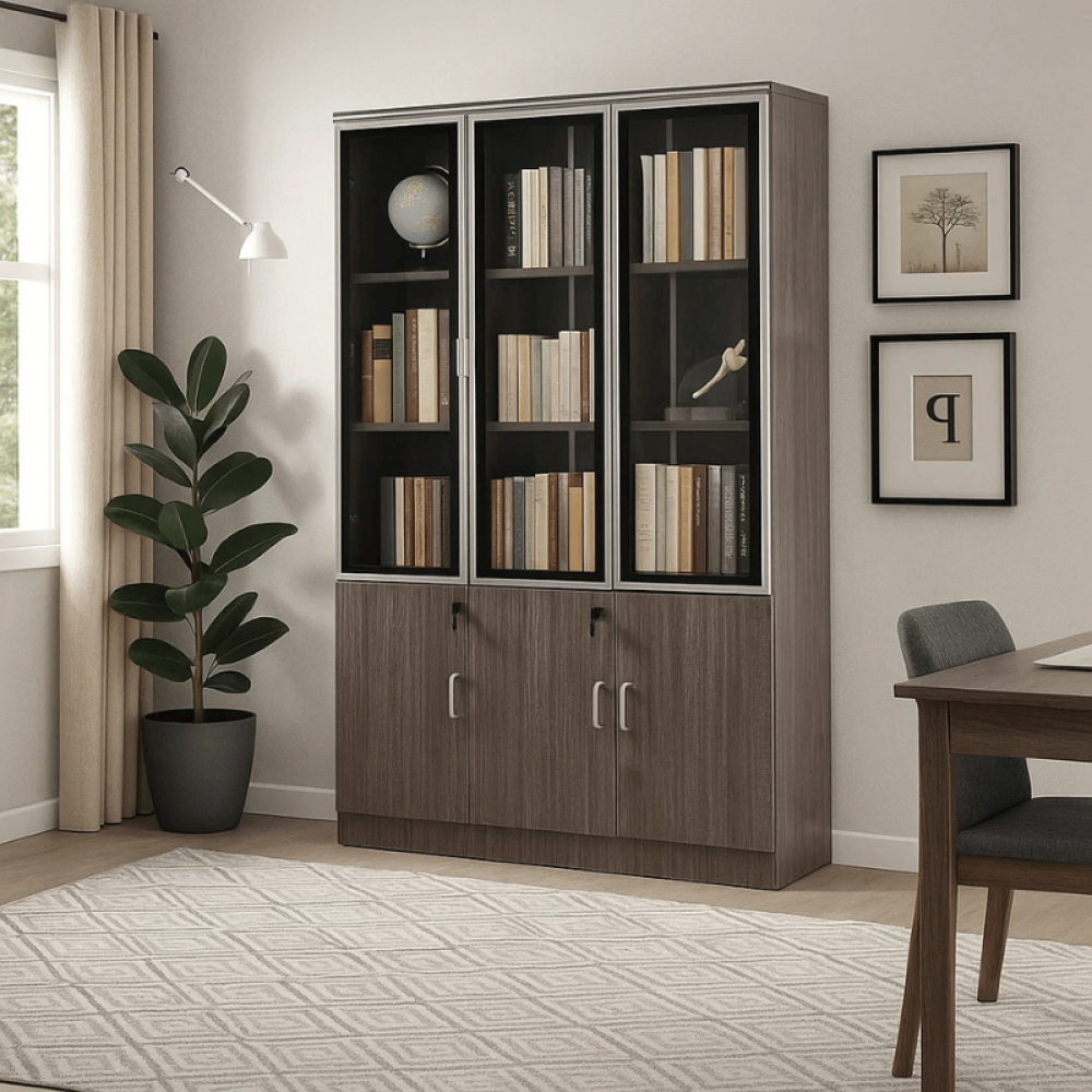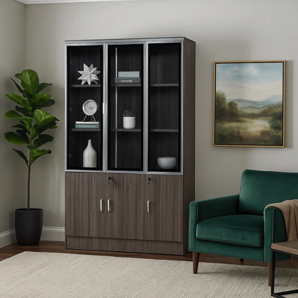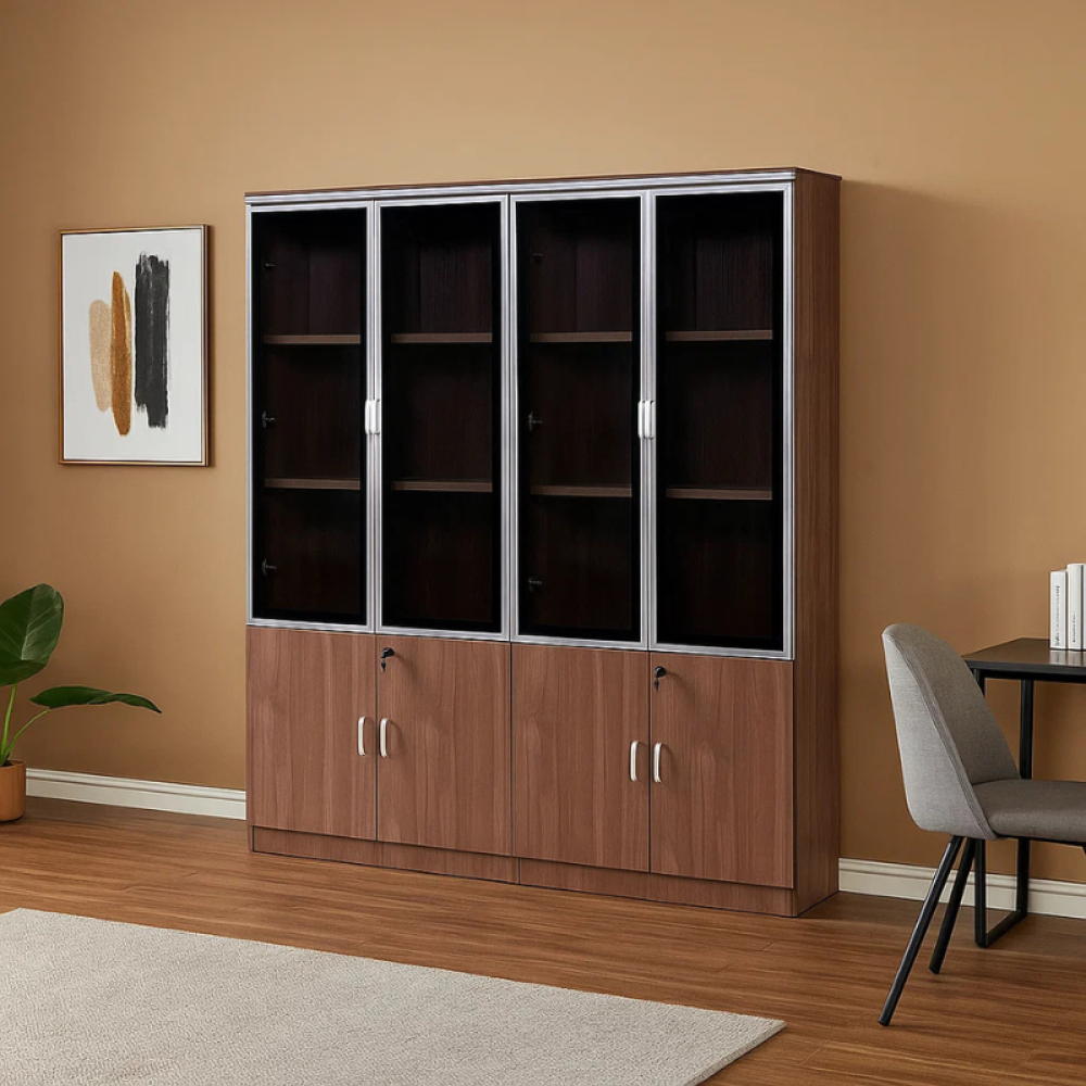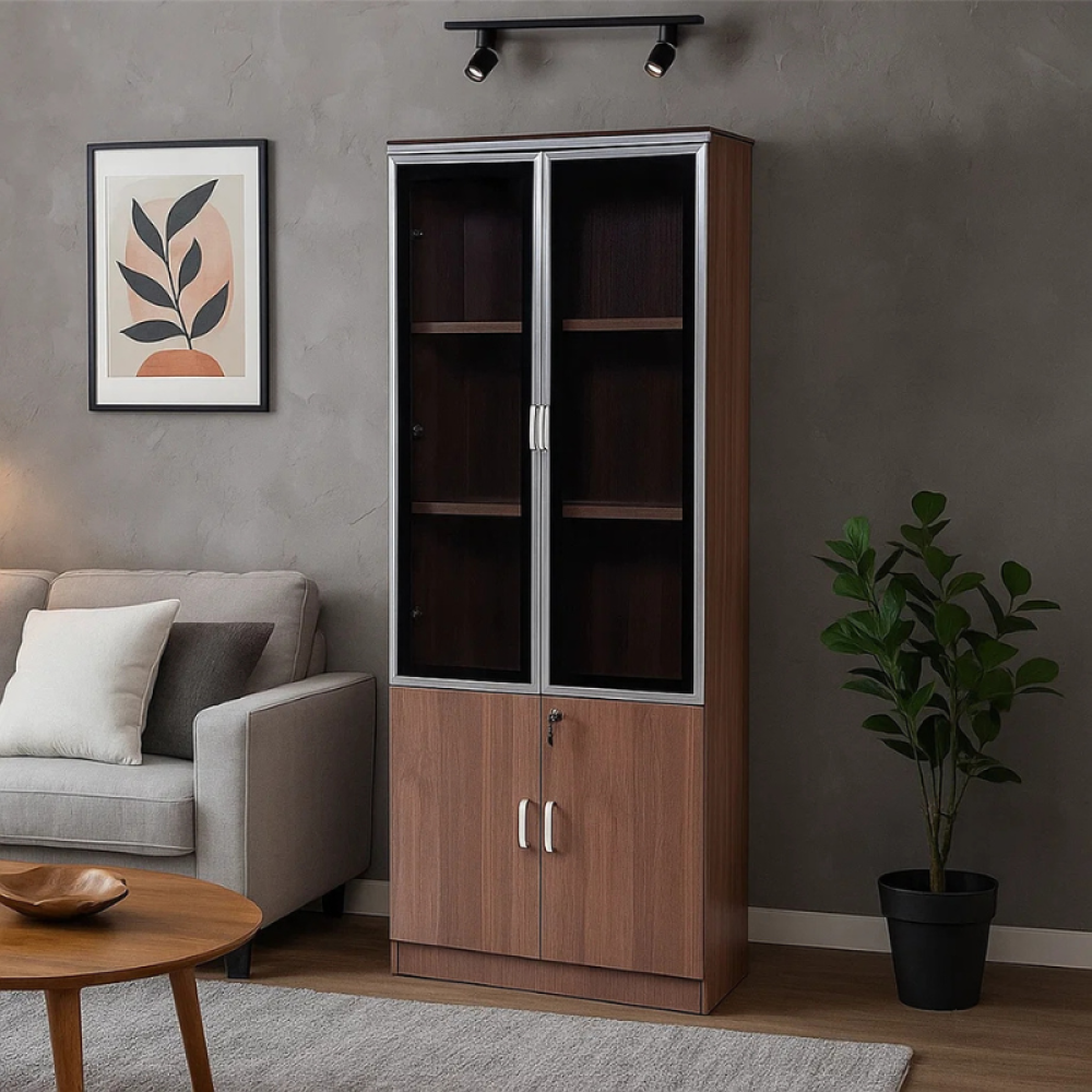 حافظ على مكتبك مرتبًا واحترافيًا مع دولاب التخزين المعدني المصمم بعناية ليدمج بين القوة والجمال. مصنوع من هيكل حديدي صلب يمنحك ثباتًا ومتانة تدوم طويلًا، مع أبواب زجاجية علوية تضيف لمسة راقية وانسيابية إلى المكتب. يتميز بتقسيم داخلي عملي يوفر مساحات متعددة لحفظ الملفات، الكتب، والمستلزمات اليومية.