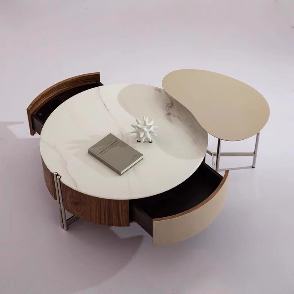طاولة قهوة أنيقة مصنوعة من خشب شجرة الجوز الصلب، بتصميم مستوحى من الطبيعة، مصنّعة من ألواح متعددة الطبقات عالية الجودة، مقاومة للتآكل ومصنوعة من مواد صديقة للبيئة، بسطح ناعم الملمس ولمسة دفء تضيف جمالاً راقياً لأي مساحة.