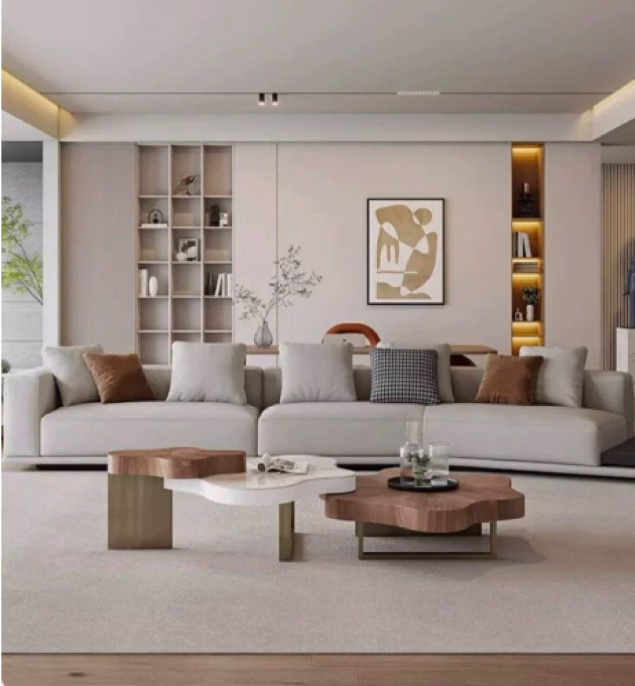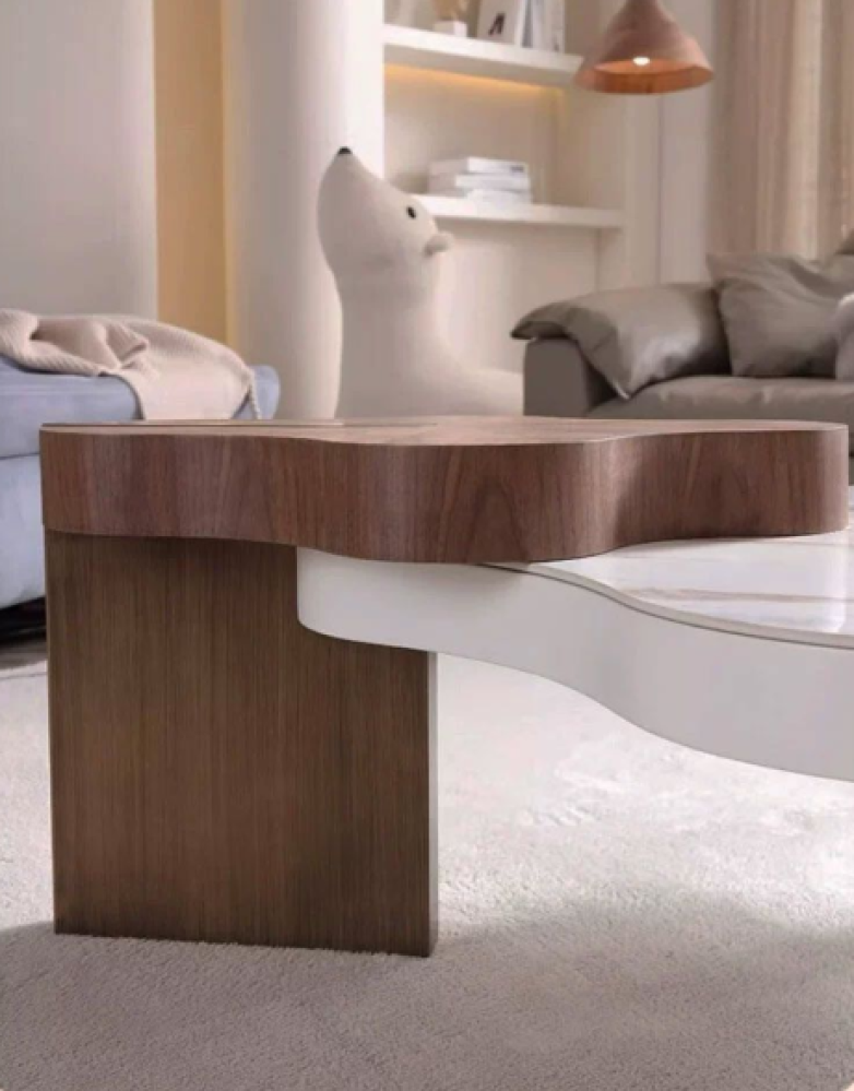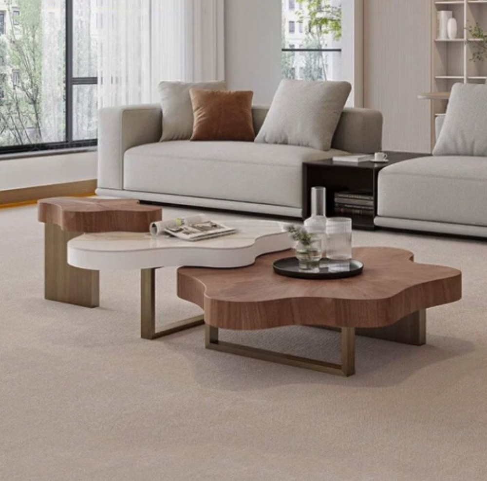 طاولة قهوة هندسية لغرف المعيشة الأنيقة – تناغم الدفء والفخامة