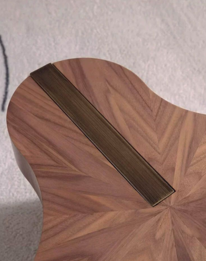 أضف لمسة من الفن المعماري الحديث إلى مساحتك مع طاولة القهوة ذات التصميم الهندسي المستوحى من جمال الأقواس ودفء الألوان. يجتمع اللون الأبيض النقي مع خشب الجوز القريب لطبيعي ليمنحا إحساسًا بالدفء والجمال، مما يجعلها قطعة مثالية تتناغم مع مختلف أنماط الديكور العصري والكلاسيكي. تم تصميم سطح الطاولة بسماكة 8 سم من الخشب الصلب عالي الجودة، مغطى بقشرة من خشب الجوز الطبيعي بملمس غني وسماكة 0.8 ملم، ليمنحك لمسة طبيعية راقية. أُعدّ السطح بعناية باستخدام طبقات من البرايمر، وتُرش بزيت الشمع لحماية إضافية ومتانة تدوم. لحماية أكبر وأمان أكثر، تأتي الحواف مستديرة لتقليل الصدمات، ما يجعلها مثالية للاستخدام العائلي اليومي. تقف الطاولة على أرجل من الفولاذ الكربوني المصقول باللون البرونزي، مما يضيف لمسة من الفخامة الصناعية القوية والمتزنة.