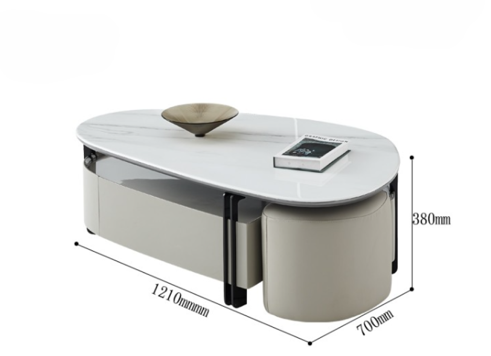 أضف لمسة من الأناقة العصرية إلى منزلك مع طاولة القهوة المصممة بدقة عالية، بسطح من الحجر البلوري الدقيق يمنحك مظهرًا فاخرًا ومتانة استثنائية. تتميز الطاولة بمقعد جلدي مخفي مدمج بانسيابية تامة، يمكن استخدامه مع الطاولة أو بشكل مستقل، مما يمنحك مرونة في الاستخدام دون التأثير على جمال التصميم.كما تحتوي الطاولة على أدراج تخزين خفية تساعدك في تنظيم المساحة بسهولة، مع تصميم ذكي سهل الفتح والإغلاق. قواعد الطاولة مصنوعة من الفولاذ الكربوني عالي الجودة، ما يمنحها ثباتًا ومتانة وقدرة على تحمل تغيرات درجات الحرارة، بالإضافة إلى سهولة التنظيف وتكتمل روعة التصميم بزاوياها المستديرة الأنيقة التي تضيف لمسة ناعمة وآمنة، لتجعلها قطعة مثالية تناسب مختلف أنماط الديكور العصري.