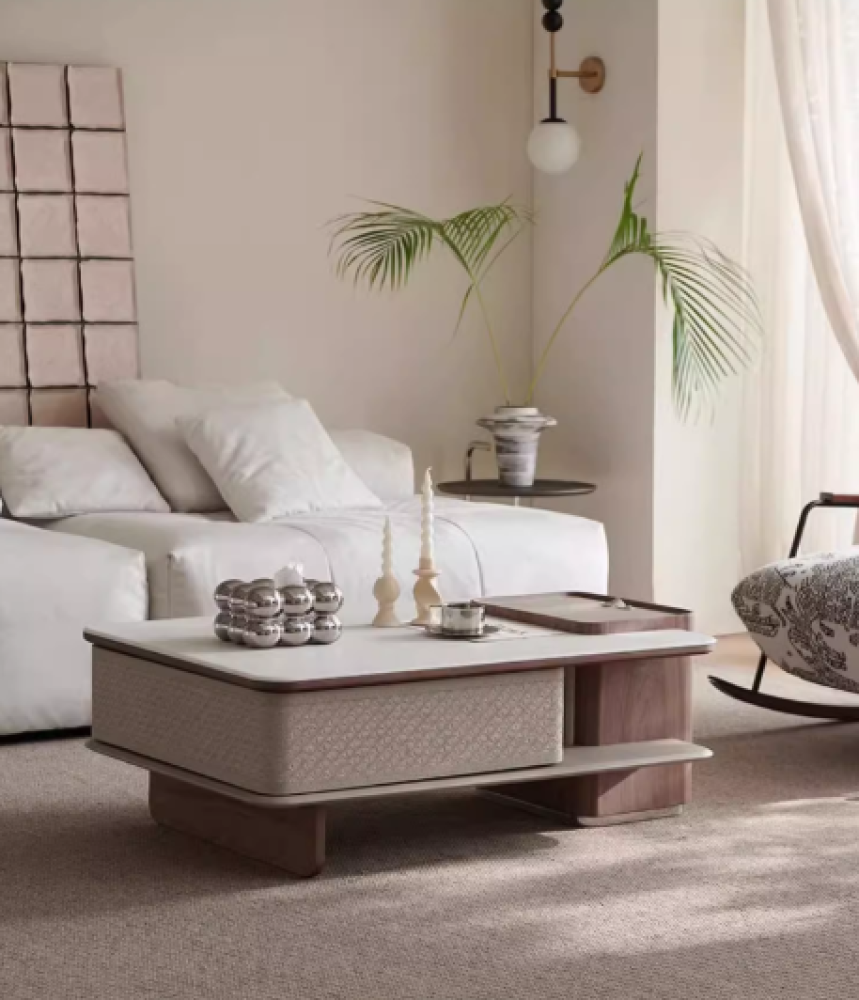 استمتع بأقصى درجات الراحة والتنظيم مع طاولة قهوة مبتكرة بتصميم ثلاثي الأبعاد يجمع بين الجمال والوظيفة.