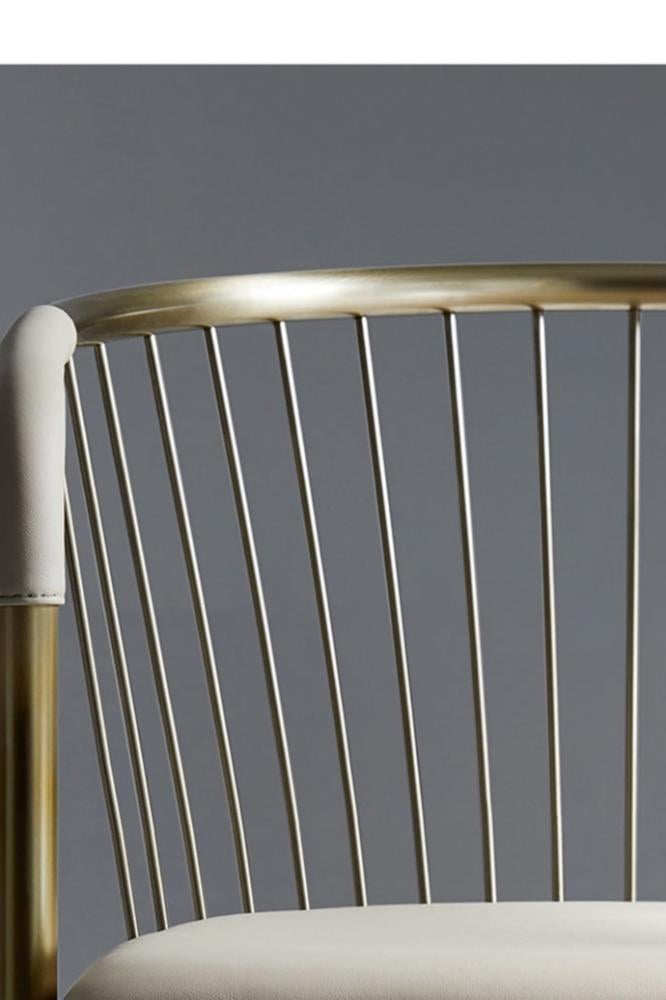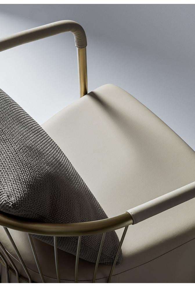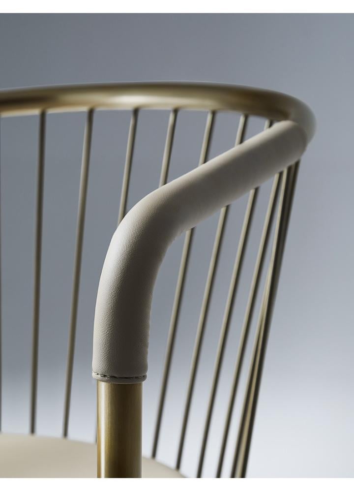 كرسي يجمع بين الفخامة العصرية والحس الفني المتقدم، بتصميم دائري أنيق وهيكل من الفولاذ المقاوم للصدأ يعكس الرقي والمتانة.
