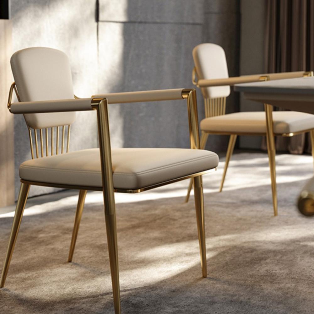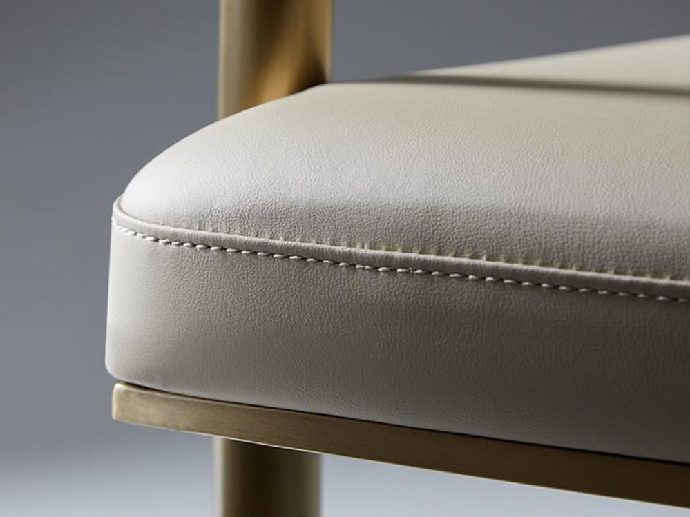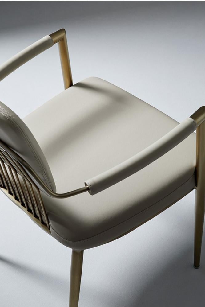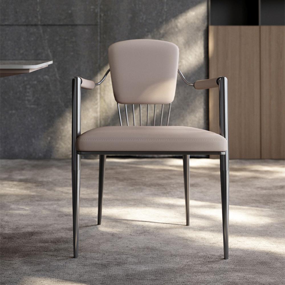 كرسي أنيق يجمع بين البساطة والفخامة، مصنوع من الفولاذ المقاوم للصدأ ومغطى بجلد فني عالي الجودة، ليمنحك تجربة جلوس مريحة بإطلالة راقية.