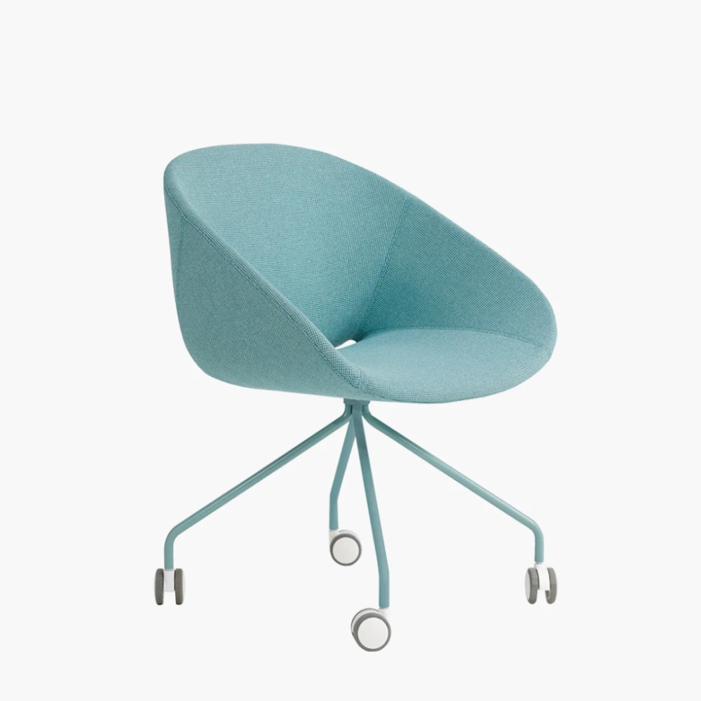 كرسي عصري ومريح للجلوس اليومي، مصنوع من الاسفنج ناعمة مدعمة بإطار فولاذي، و قماش متميز مع أرجل قوية مزودة بعجلات للسهولة في الحركة باللون الأسود أو الأبيض. تصميمه يوفر دعمًا ممتازًا للوزن ويجمع بين الراحة والمتانة والأناقة.