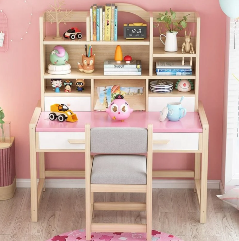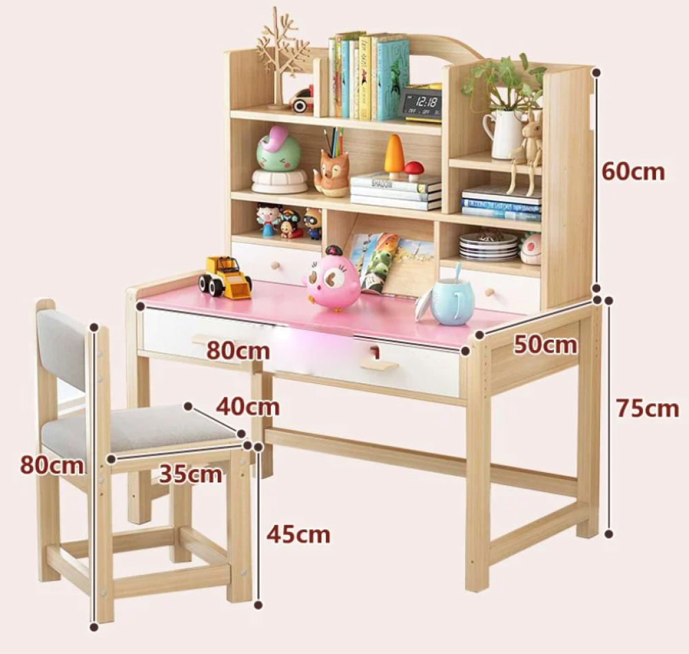 مكتب أطفال خشبي مزود بـ 2 أدراج أمامية، مصنوع من خشب MDF عالي الجودة. متوفر باللونين الأخضر والوردي.