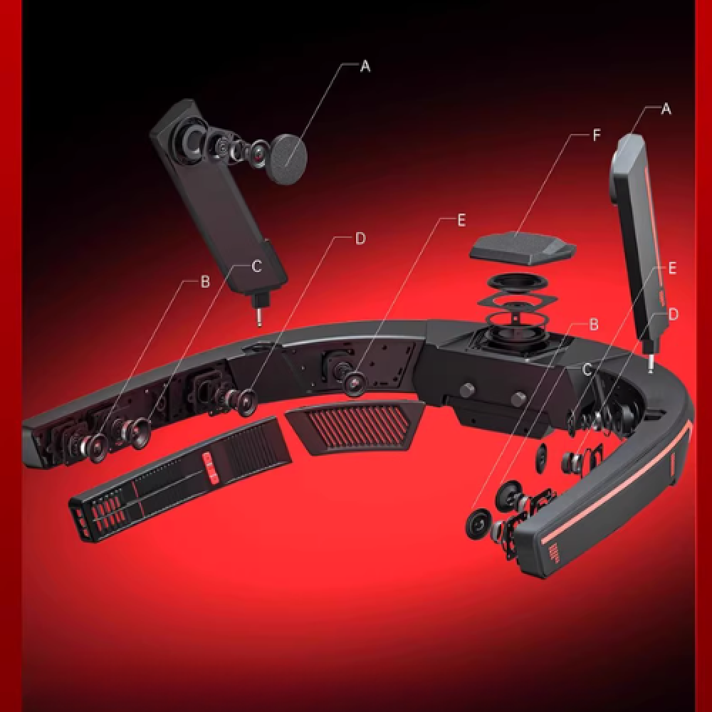 تصميم محيطي ذكي :يحيط المستخدم بمصادر صوتية مدمجة من الجوانب ومن الأعلى، لتغمره تمامًا بالصوت، سواء أثناء اللعب أو المشاهدة.